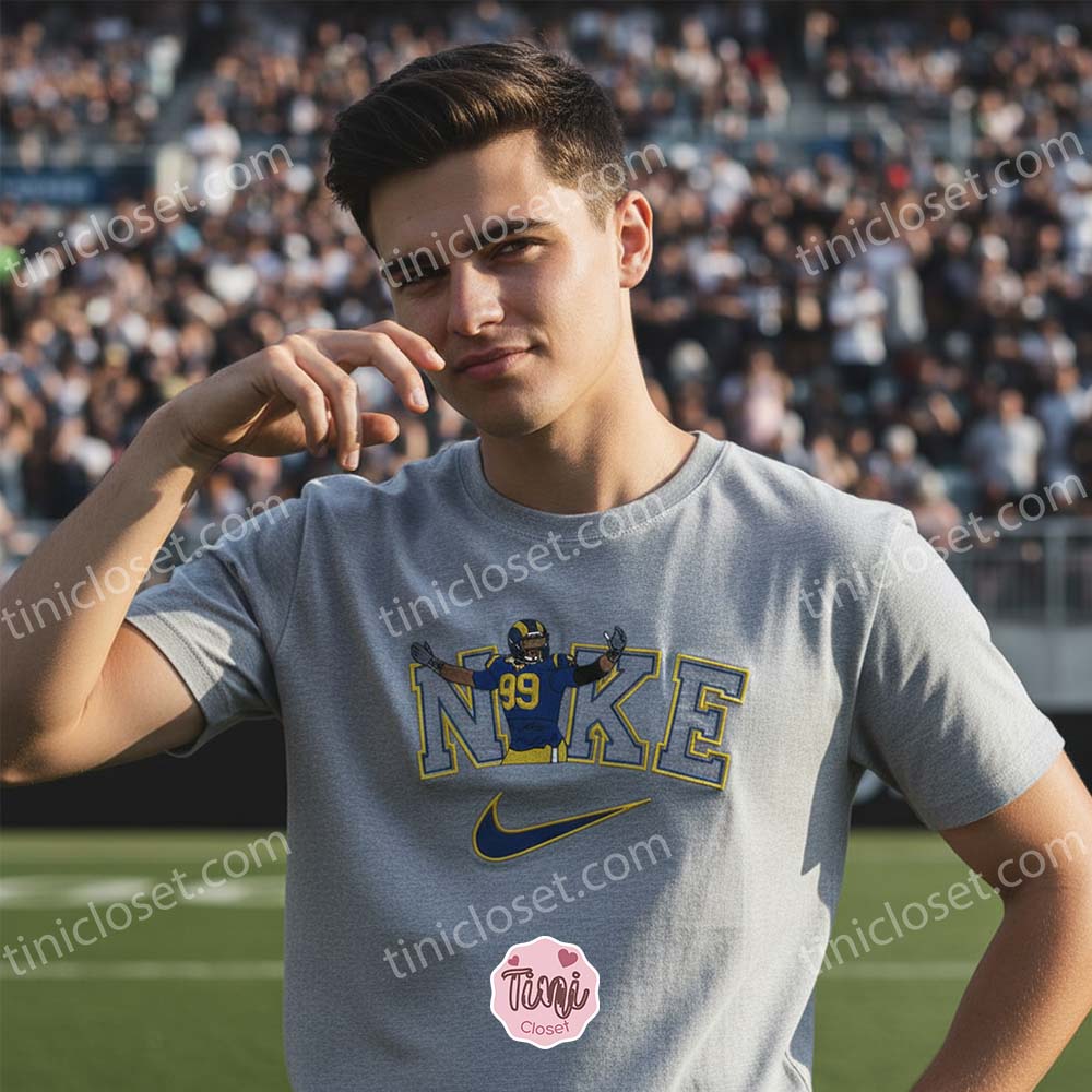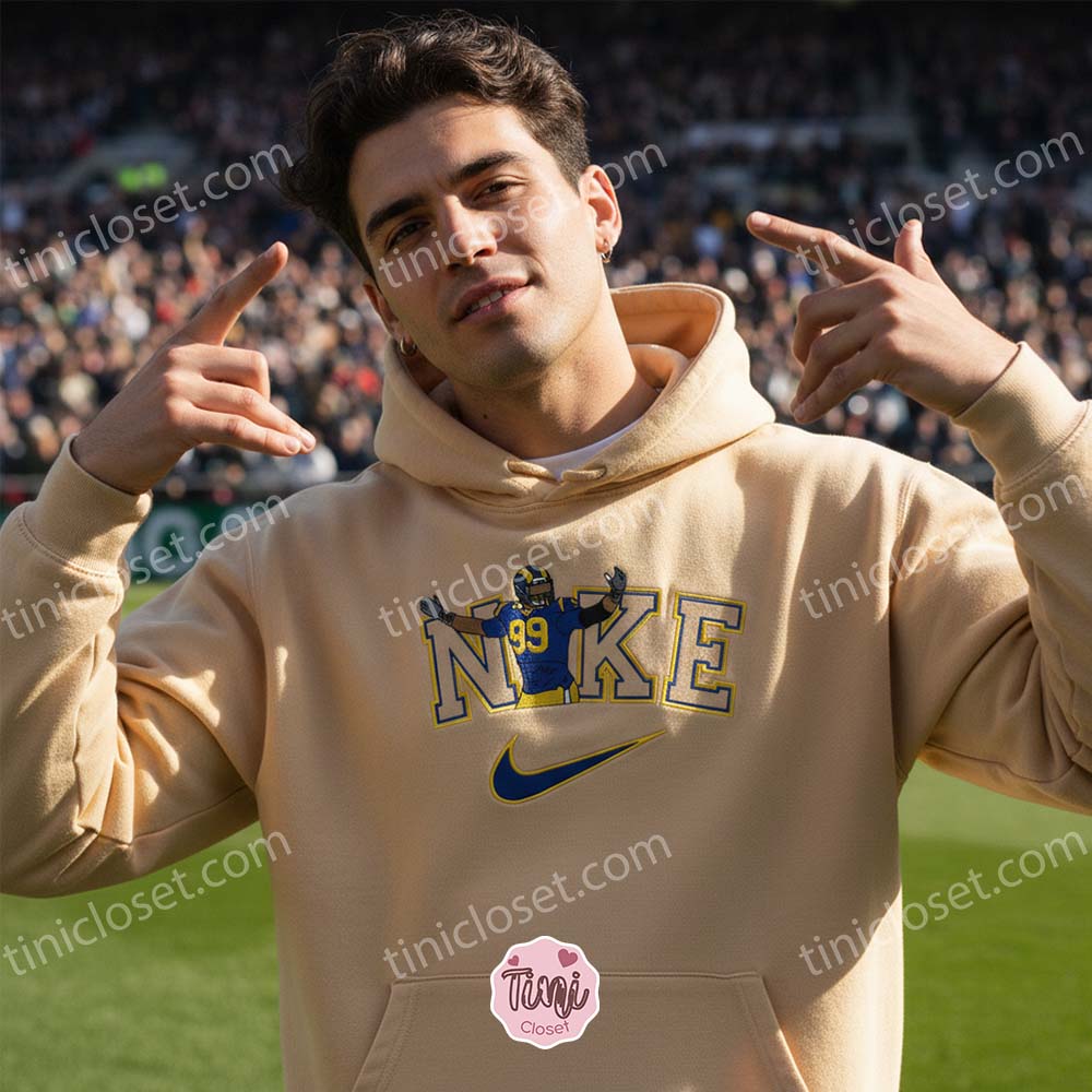 In the world of American football, few names command as much respect and awe as Aaron Donald. As a powerhouse for the Los Angeles Rams, his presence on the field was nothing short of legendary. At Tinicloset, we believe that such greatness deserves to be celebrated with style, which is why we’ve launched the Aaron Donald 89 NFL Embroidered Sweatshirt. This isn’t just another piece of fan merchandise; it is a sophisticated blend of Custom Embroidery, premium comfort, and athletic heritage.