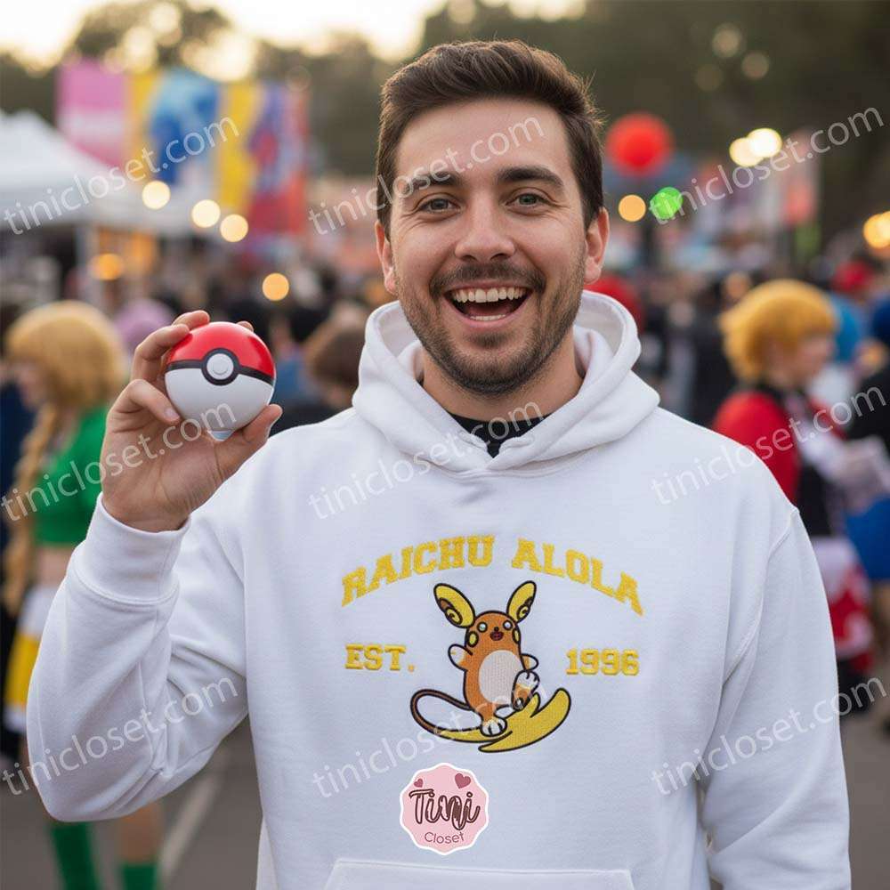 Alolan Raichu is a symbol of the Sun & Moon era, a time of Z-Moves and Island Challenges. This Alola Raichu Embroidered Sweatshirt is the perfect gift for: