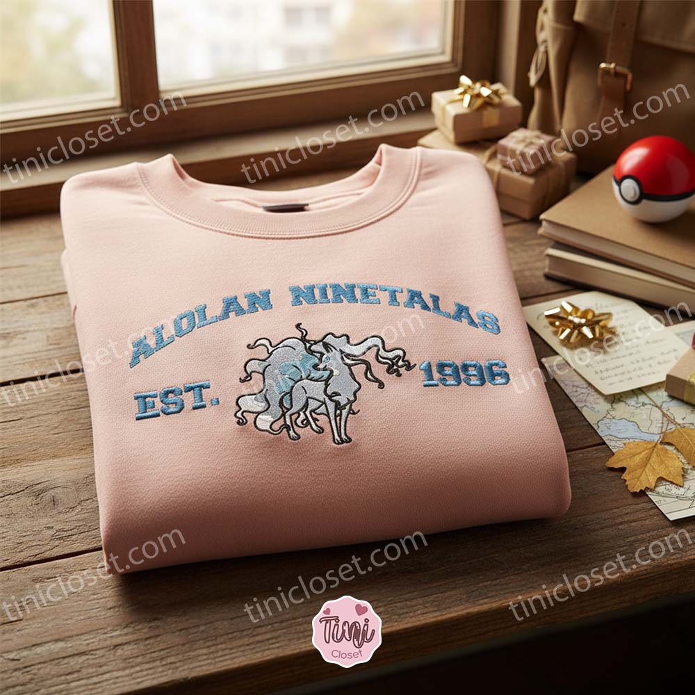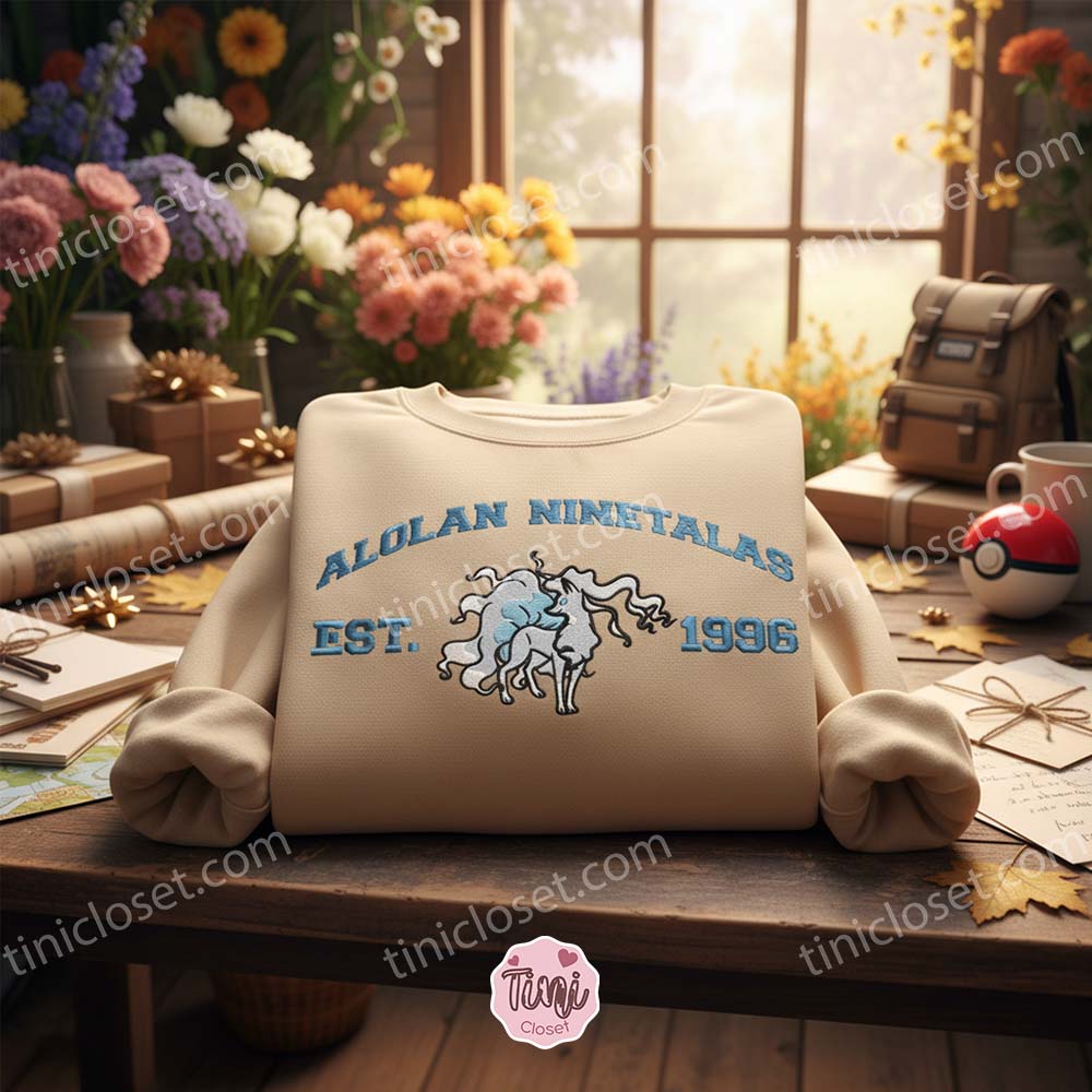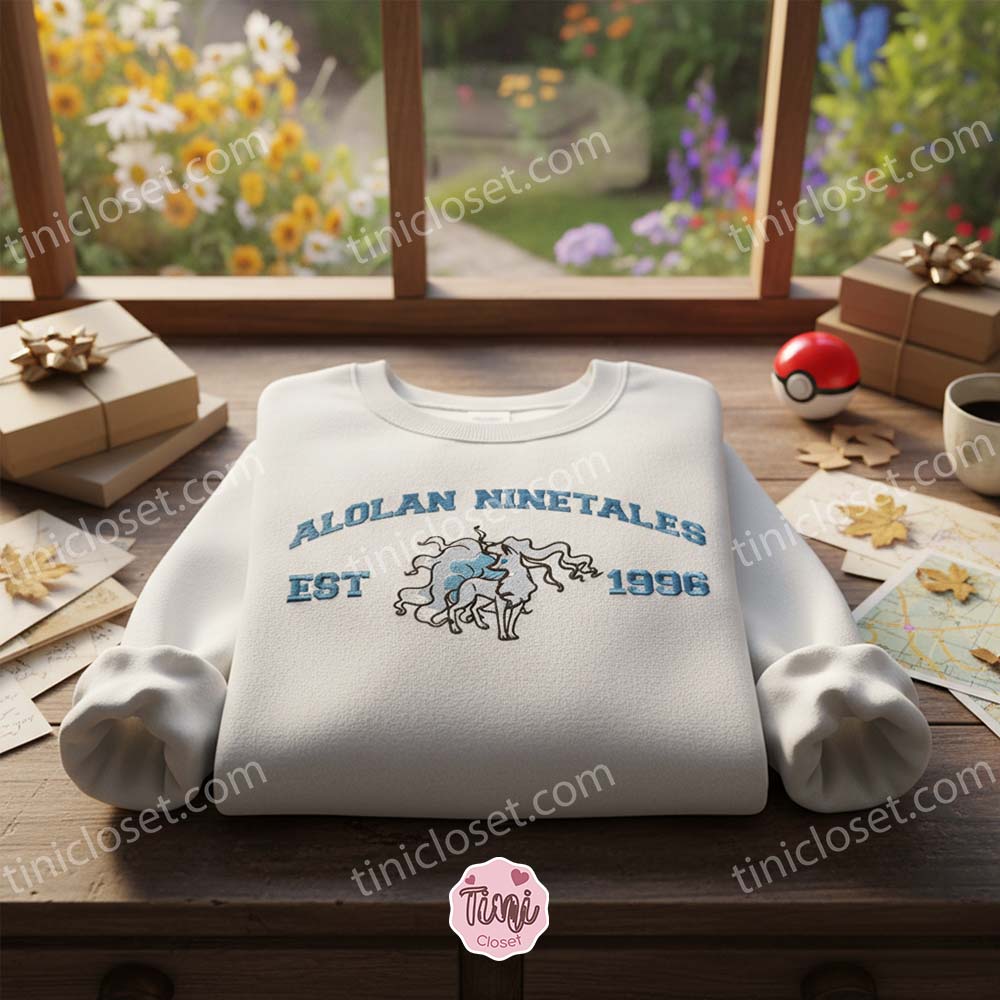 Elevate your style with this elegant Alolan Ninetales Embroidered Pokemon Sweatshirt