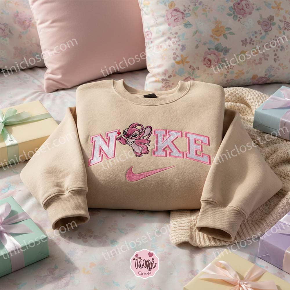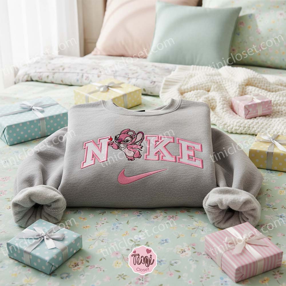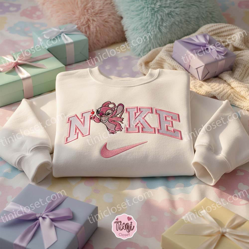 The Color Pop: Angel’s soft pink fur and purple markings are stitched in vibrant, romantic tones. Whether on a classic white, deep black, or matching pink hoodie, the design radiates warmth and love.