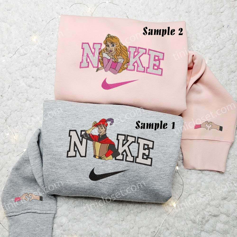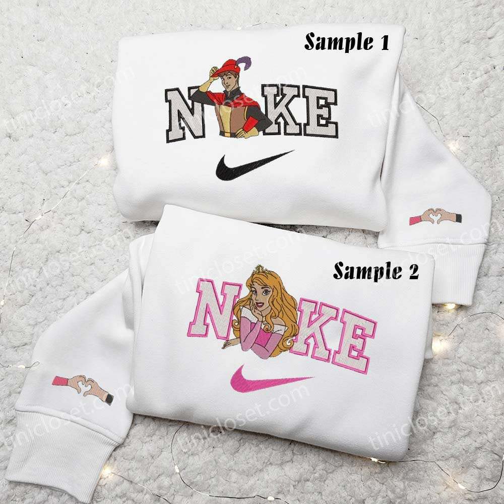 Introducing the latest addition to our Tinicloset collection: the Aurora and Prince Phillip embroidered couple shirts! This enchanting duo from Disney’s classic animated film, “Sleeping Beauty,” is now featured on our high-quality embroidered shirts, sweatshirts, and hoodies. Our Disney Characters embroidered shirt collection and Couple embroidered shirt collection offer a variety of designs inspired by their magical adventures and heartwarming love story.