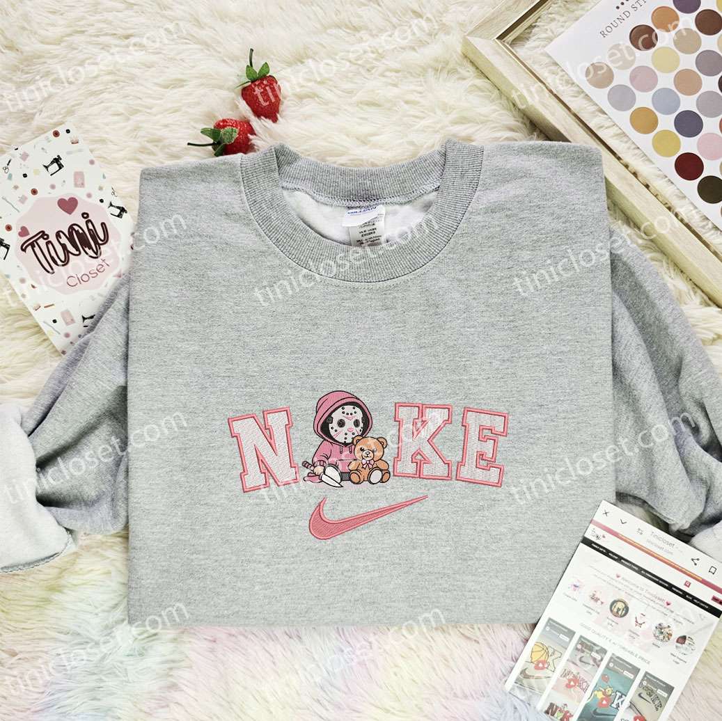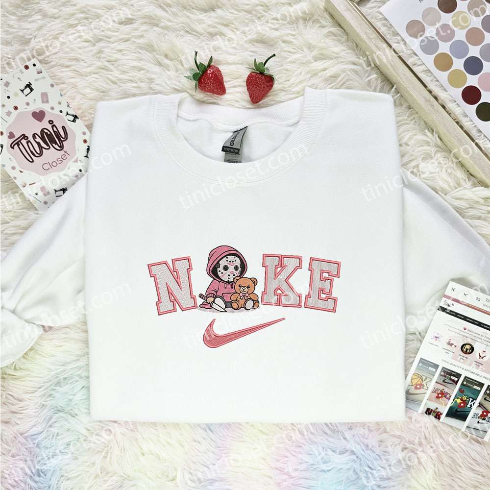 What sets Tinicloset apart from other clothing brands is its commitment to quality craftsmanship and originality. Every embroidered piece is designed with precision, ensuring that customers receive clothing that looks and feels premium. Instead of offering generic Halloween-themed shirts that everyone else might wear, Tinicloset gives its audience something far more memorable. Fans of slasher films or gothic aesthetics will appreciate how the baby Jason Voorhees pink Teddy design introduces a fresh and playful twist to an otherwise terrifying character. By blending horror imagery with childlike innocence, the design captures both irony and humor, making it perfect for parties, conventions, or everyday wear if you enjoy edgy fashion.