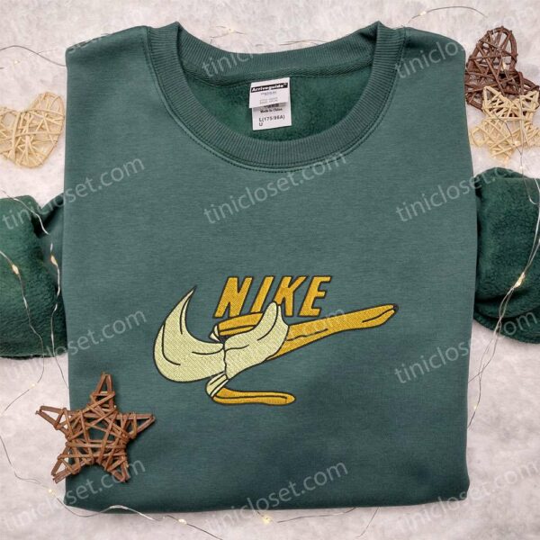 Banana Nike Logo Embroidered Shirt, Nike Inspired Embroidered Hoodie, Best Gifts For Family
