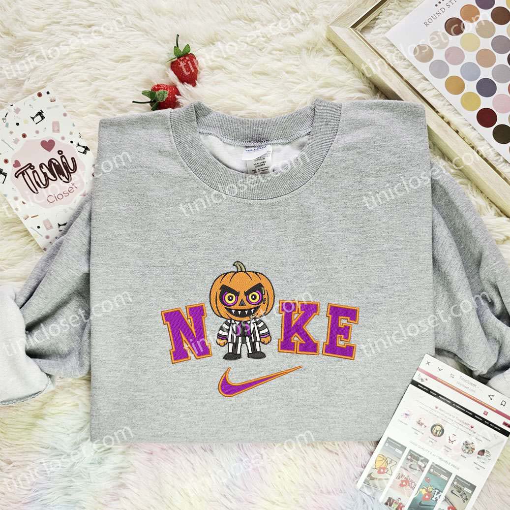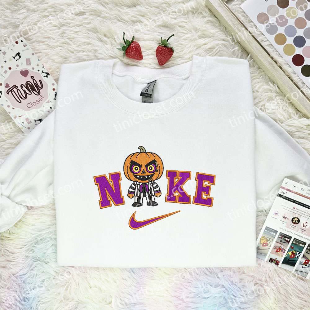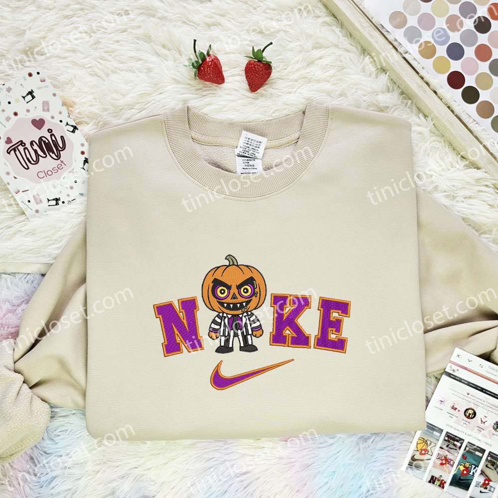 Beetlejuice Pumpkin Head Embroidered Shirt, Horror Movie Embroidered Hoodie, Halloween Embroidered Sweatshirt