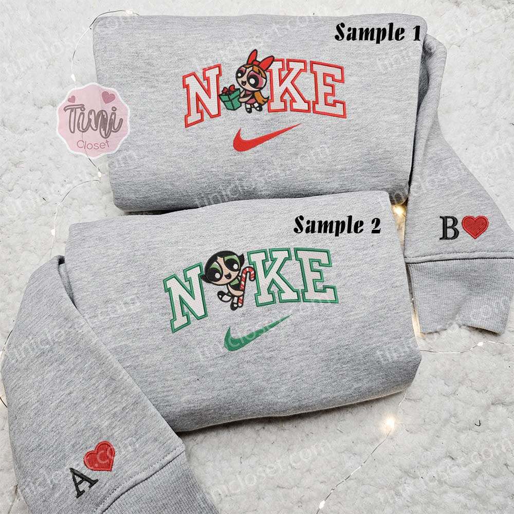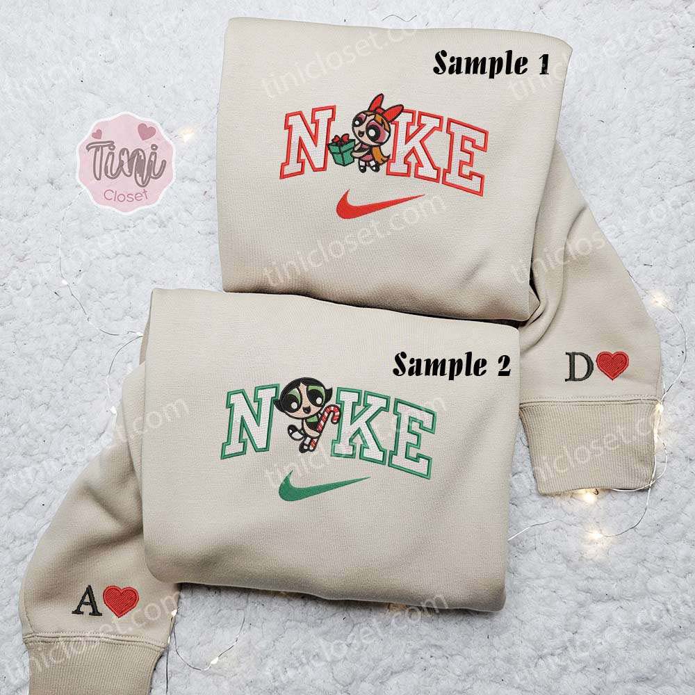 Blossom And Buttercup Christmas Powerpuff Girls Embroidered Shirts, Cartoon Embroidered Sweatshirts, Couple Embroidered Hoodies
