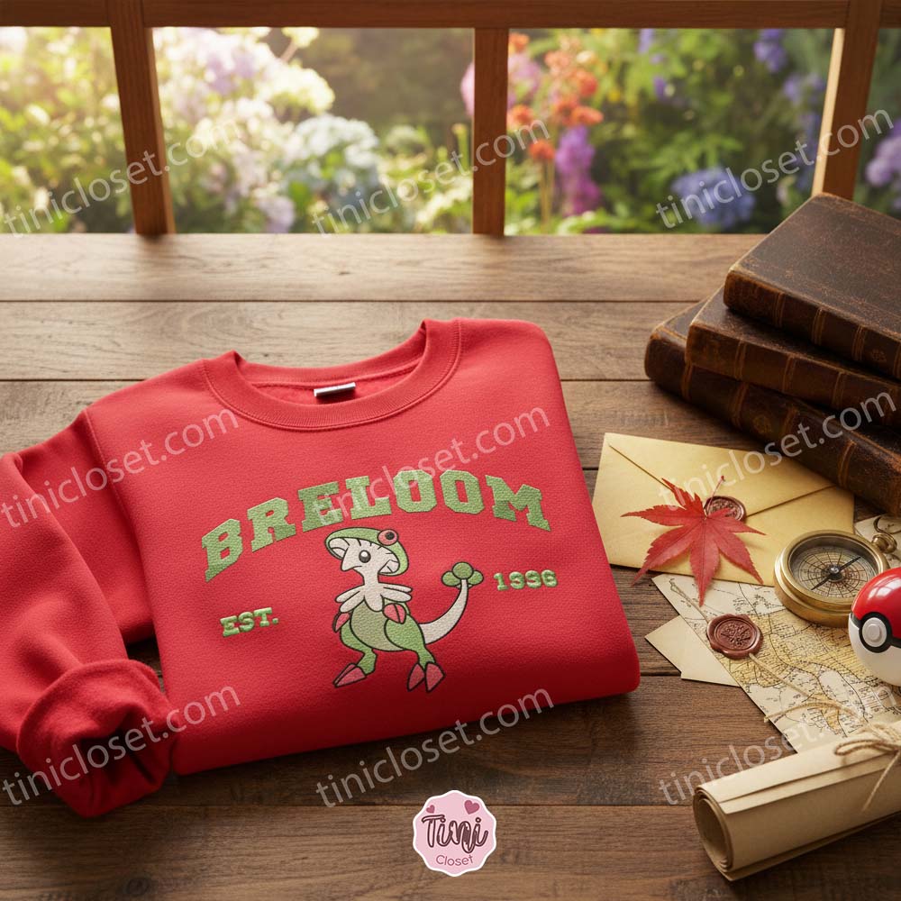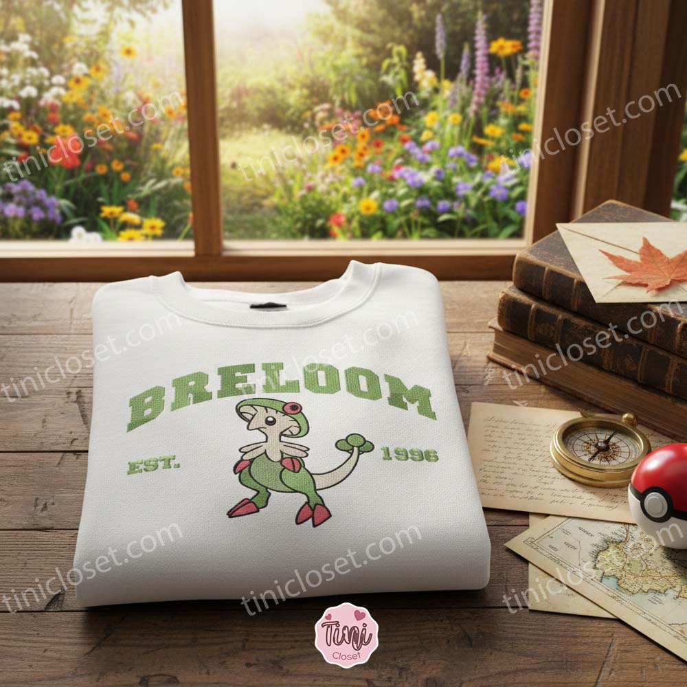 Breloom Anime Embroidery Sweatshirt, Retro Gaming Crewneck, Boyfriend Hoodie Gift