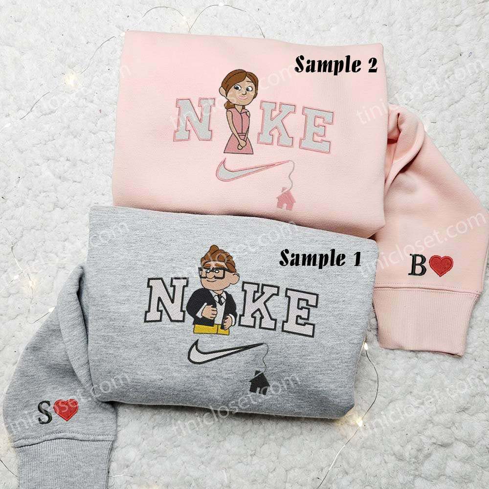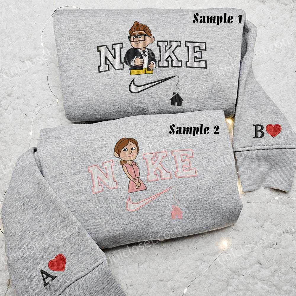 Carl and Ellie Up Embroidered Shirts, Disney Characters Embroidered Sweatshirts, Couple Embroidered Hoodies