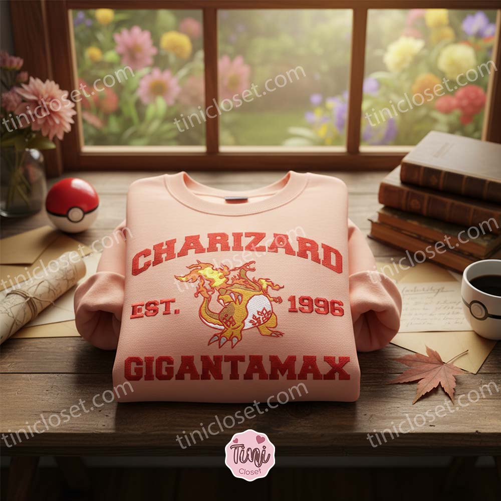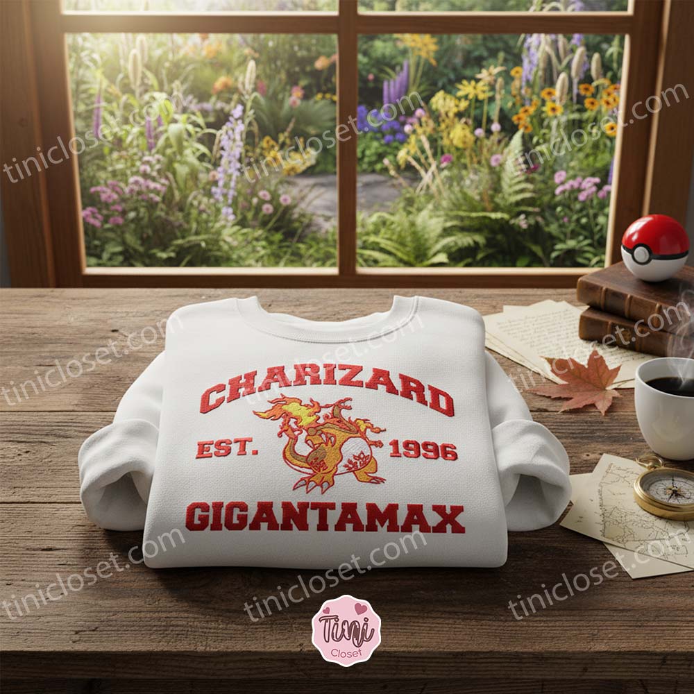 Charizard Gigantamax Embroidered Sweatshirt, Fire Starter Crewneck – Boyfriend hoodie gift for Gamers
