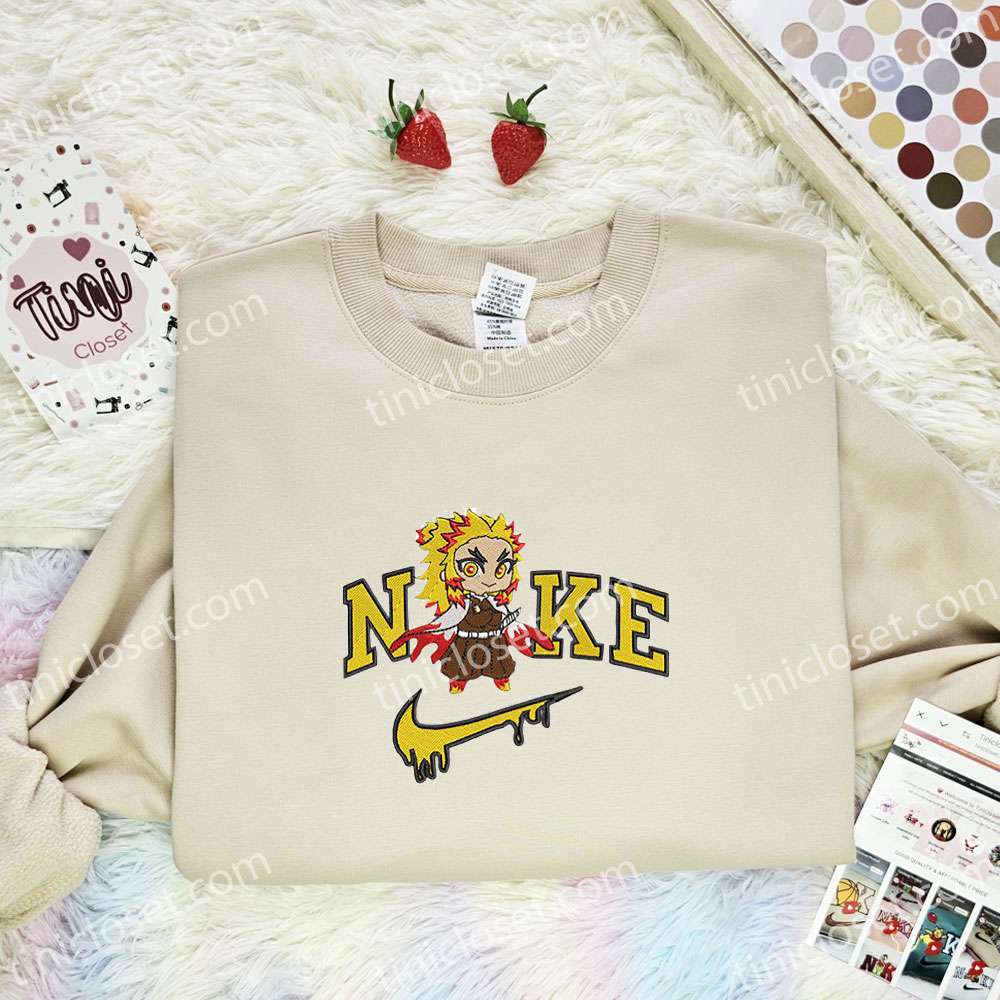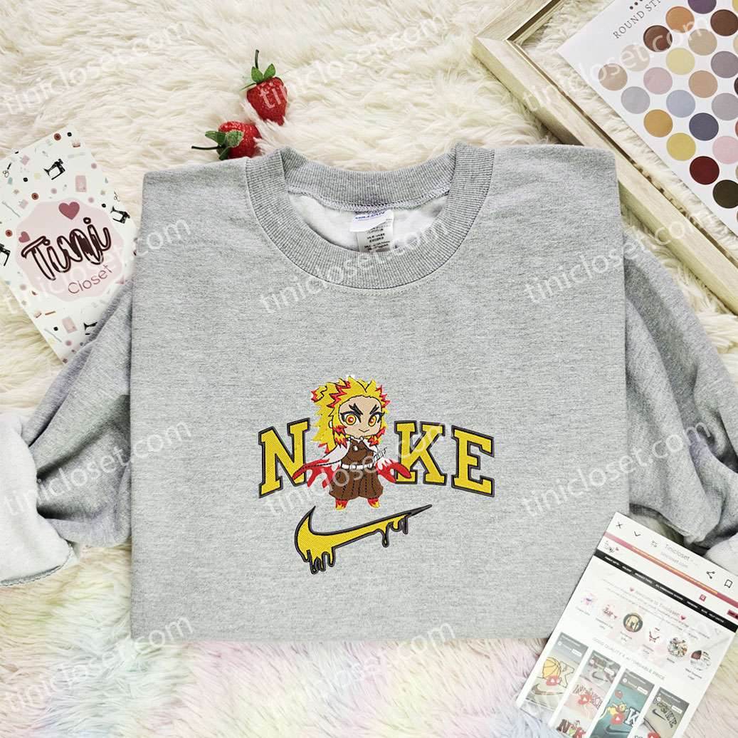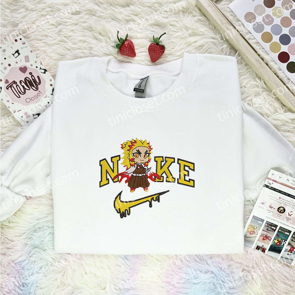 Chibi Rengoku Embroidered Shirt, Demon Slayer Embroidered Hoodie, Anime Embroidered T-Shirt