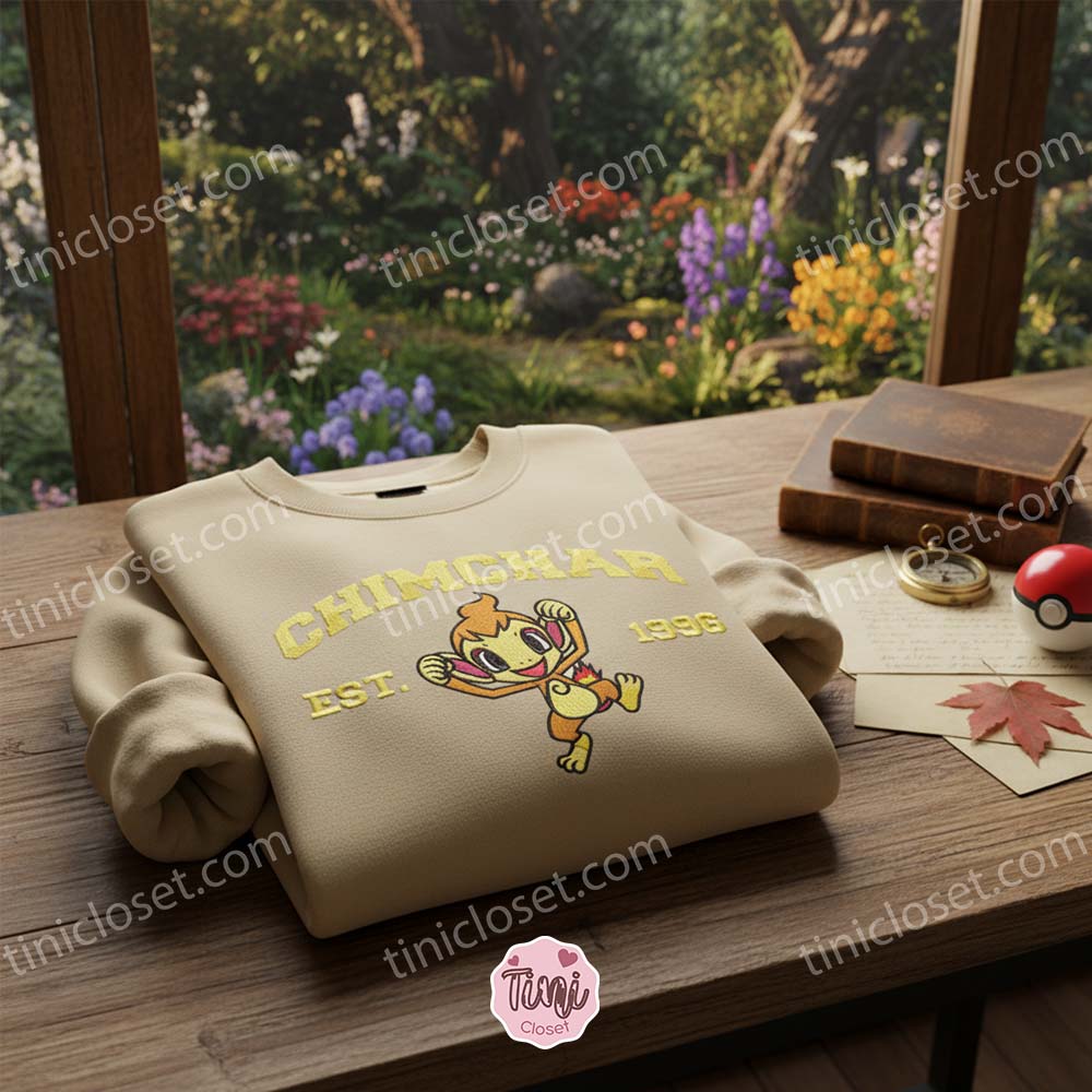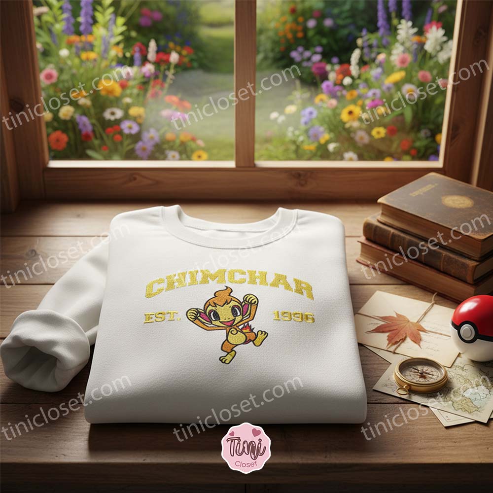 Chimchar Embroidered Sweatshirt, Sinnoh Starter, Bestie Matching Crewneck for Pokemon Fans