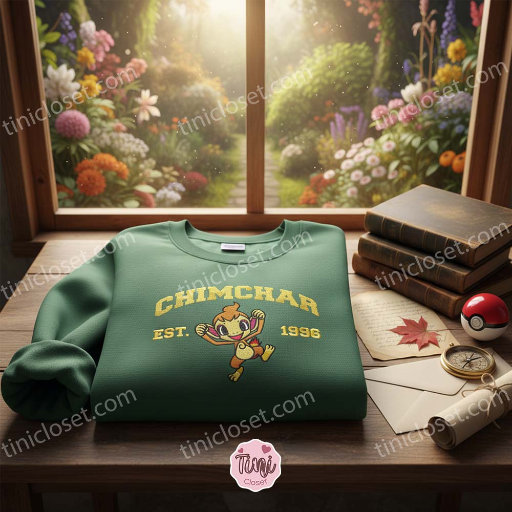 Bring the heat of the Sinnoh region to your wardrobe with this energetic Chimchar embroidered sweatshirt! As the Fire-type starter of Gen 4, Chimchar is loved for its playful personality and fiery spirit—making this the perfect top for trainers who are always ready for an adventure.