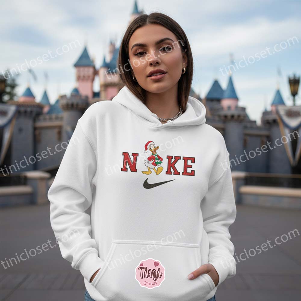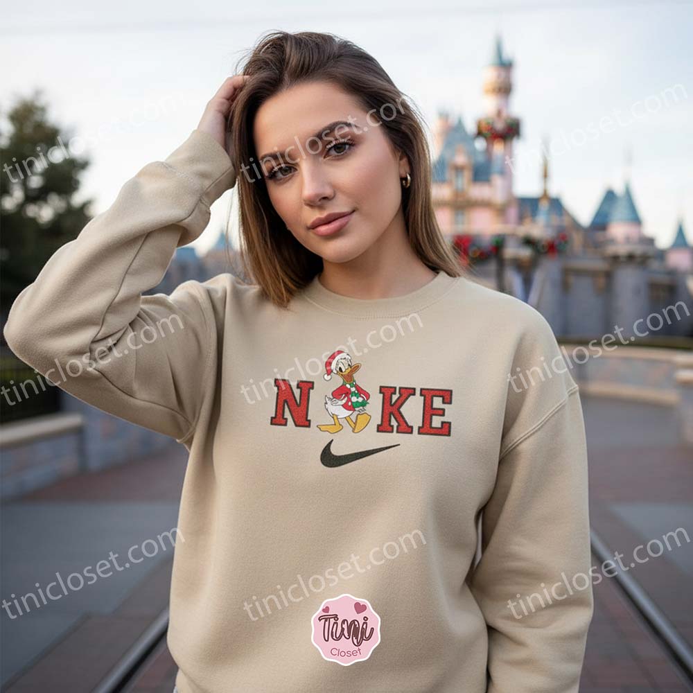 Picture yourself stepping into the enchanting realm of Tinicloset and being greeted by our most enchanting creation, the Nike Christmas x Donald Duck Laughing embroidered sweatshirt. This exceptional masterpiece brings together the iconic Nike swoosh and the heartwarming charm of everyone’s favorite Disney character, Donald Duck. But here’s the twist – Donald is not just any Donald; he’s the embodiment of pure holiday joy, captured in a fit of adorable laughter. His infectious giggles are artfully embroidered onto the sweatshirt, and you can’t help but join in the merriment. It’s the kind of excitement that makes you want to wrap yourself in the spirit of Christmas and Donald’s irresistible laughter.