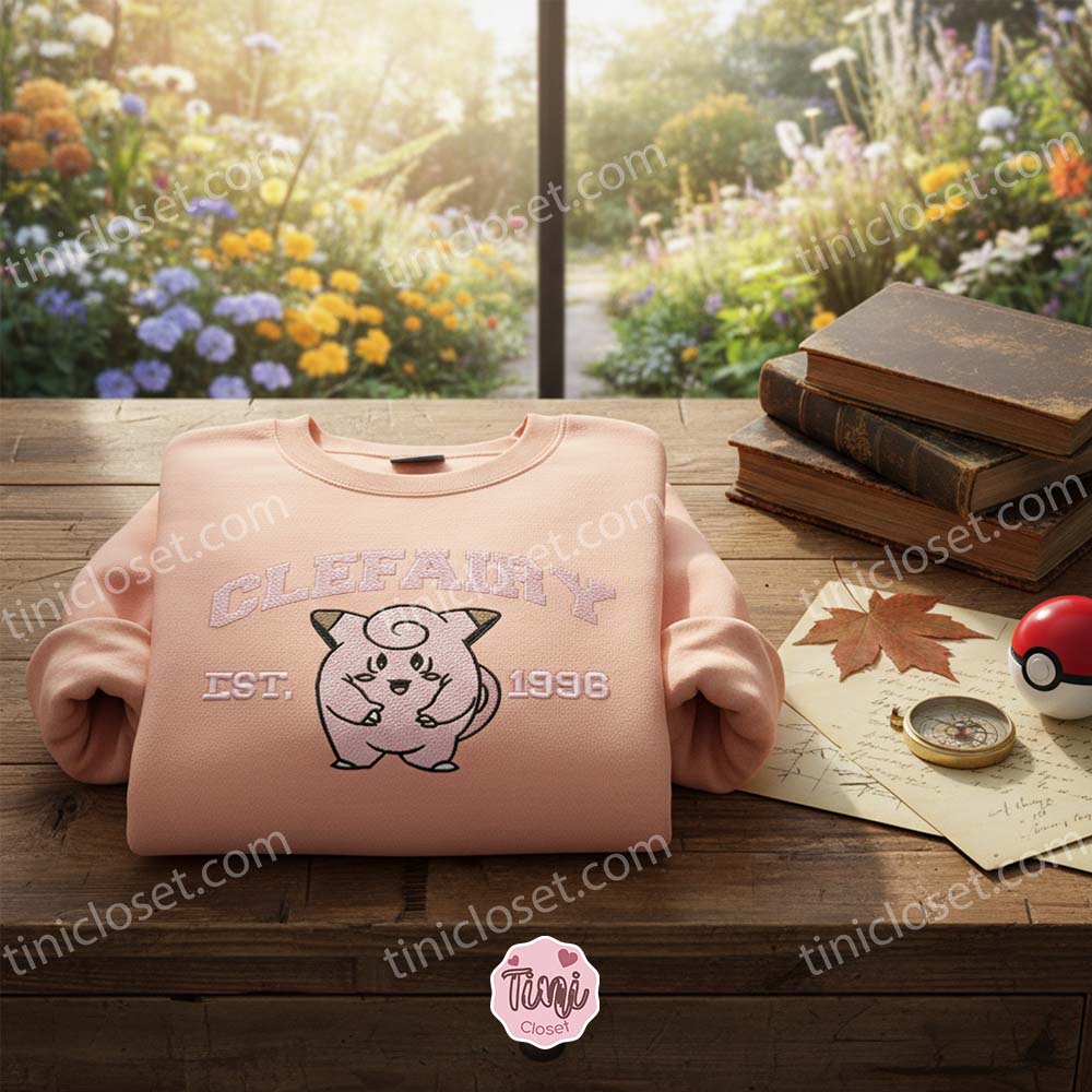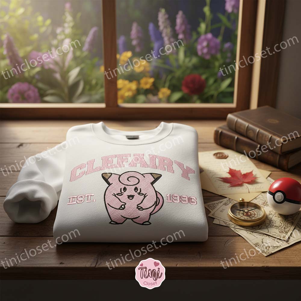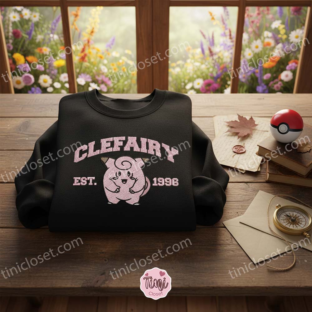 Clefairy Est 1996 Embroidered Sweatshirt, Pokemon Hoodie, Galentine Gift Ideas for Fairy Type Fans