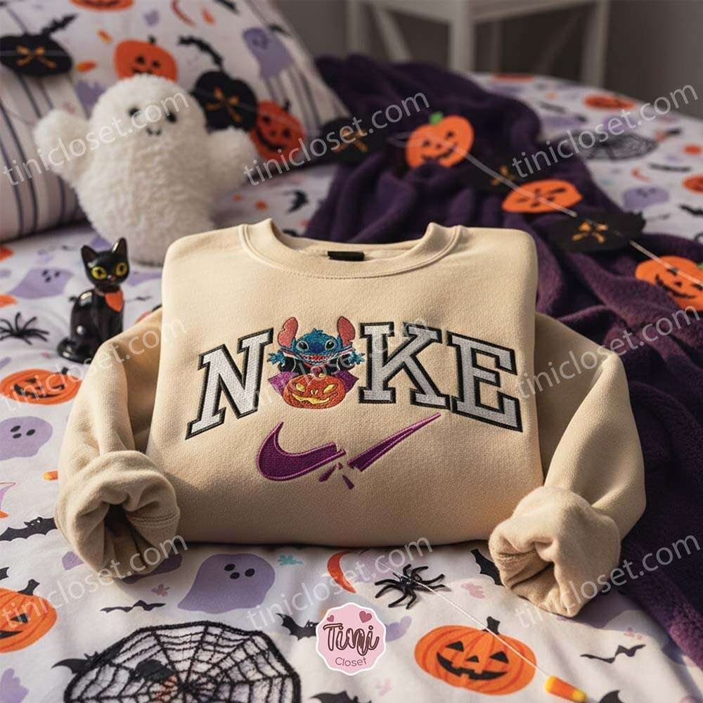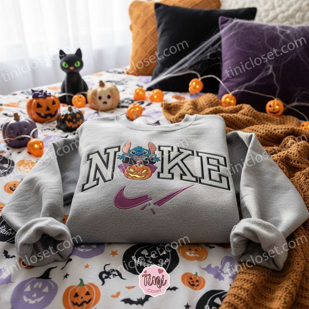Imagine the classic athletic “Swoosh” logo being smashed or bitten by a glowing pumpkin or a vampire Stitch. It creates a “bootleg vintage” look that is incredibly popular in streetwear culture right now. It’s perfect for fans who want to rock Disney gear without it looking like a standard souvenir shop t-shirt. It’s edgy, active, and undeniably cool.