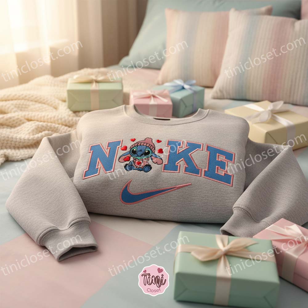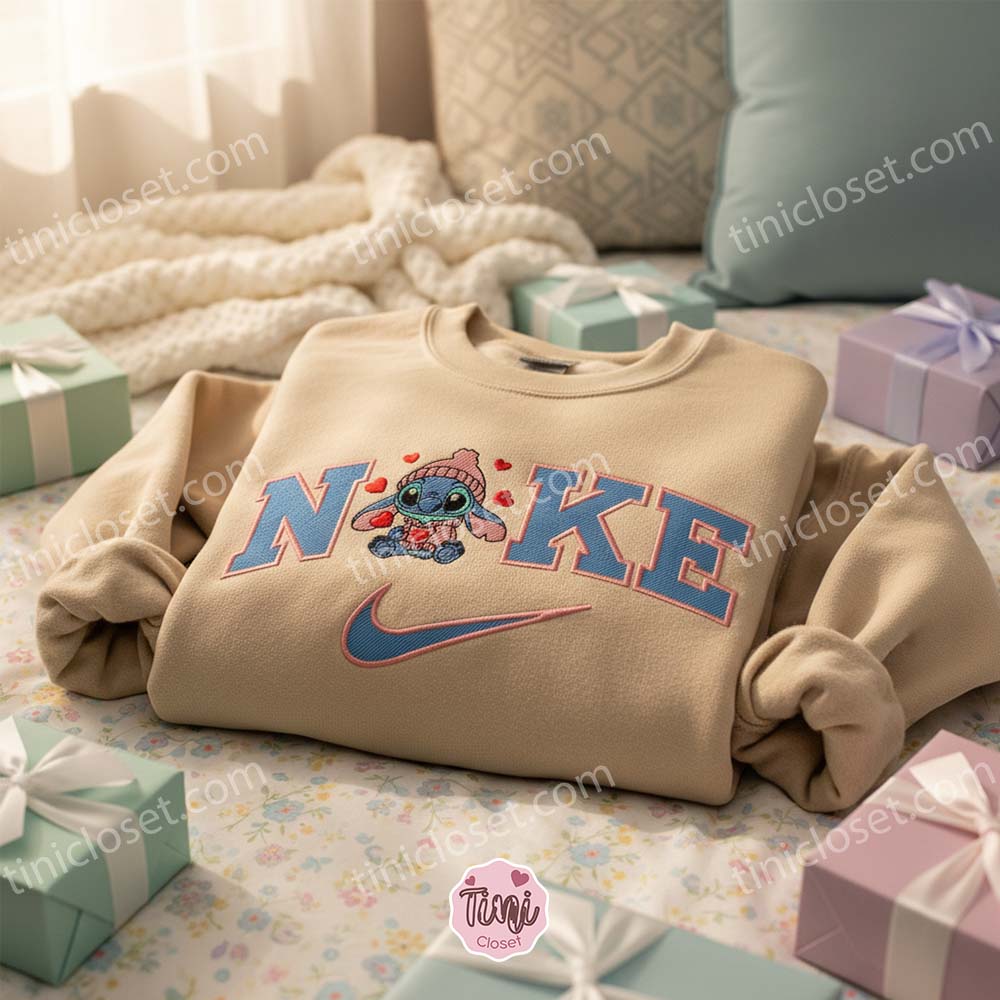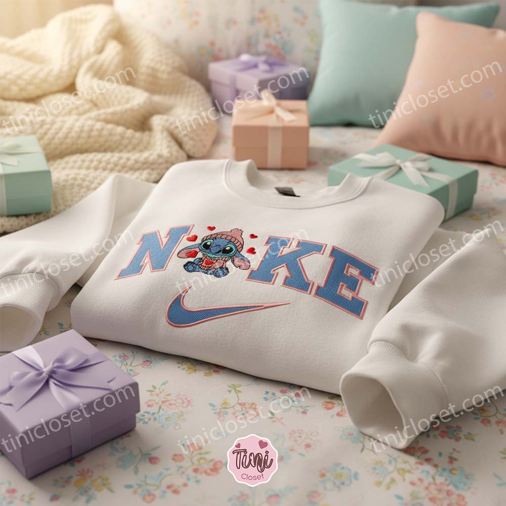 Cozy Stitch in Winter Sweater Embroidered Hoodie, Custom Experiment 626 Swoosh Shirt, Valentine’s Day Disney Gift, Minimalist Ohana Crewneck