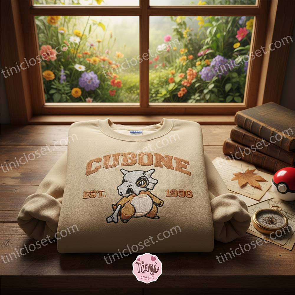 Embrace the “Lonely Pokémon” with this premium Cubone embroidered sweatshirt. Known for wearing the skull of its mother and its solitary nature, Cubone is a character that tugs at the heartstrings of every Trainer. Now, you can give this little Ground-type the warmth it deserves.