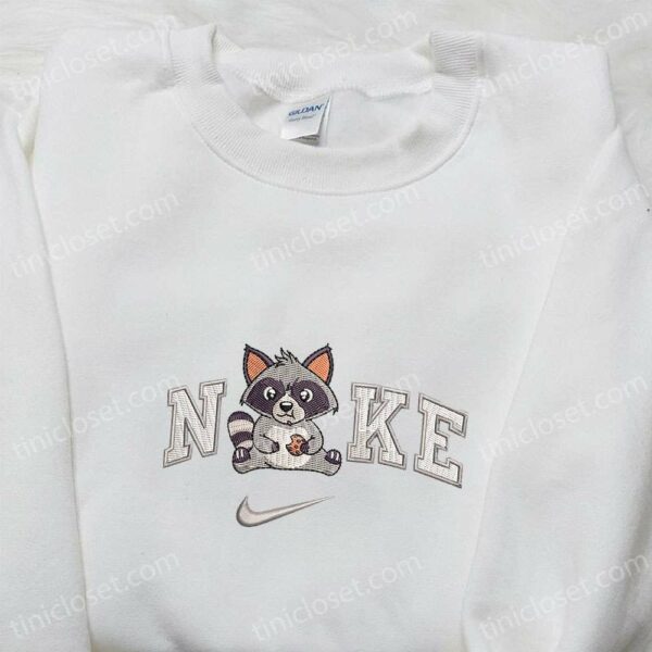 In conclusion, Tinicloset is more than just a clothing store; it’s a place where creativity meets quality, where style is combined with comfort, and where personalized expressions are celebrated. Our Cute Racoon Eating Cookie x Nike embroidered shirt, Animal embroidered shirts, Nike Inspired embroidered sweatshirt, and other embroidered apparel are the stars of our collection, and they have the power to make customers eager to own a piece of our unique clothing.