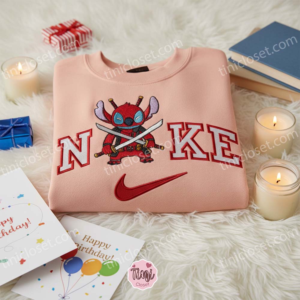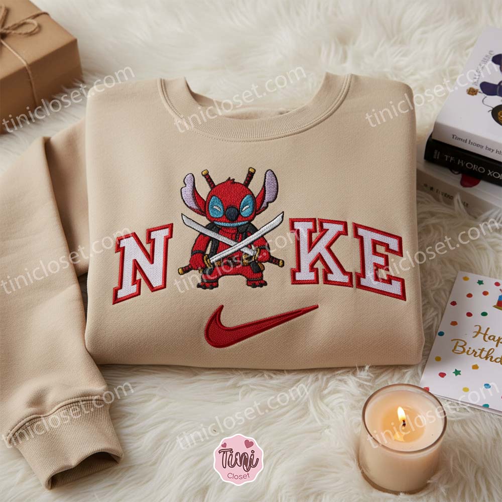 However, we don’t just stick to the traditional. We love to mix and match universes to create something truly hilarious and eye-catching. One of our absolute fan favorites is the mashup genre. Imagine the mischievous energy of Experiment 626 combined with the irreverent humor of the “Merc with a Mouth.” Our design featuring a cute Stitch cosplay Deadpool is the perfect example of this creativity. It blends the adorable aesthetics of Lilo’s best friend with the edgy, red-and-black tactical gear of Marvel’s anti-hero. This kind of innovative crossover art makes our embroidered hoodies and shirts absolute must-haves for collectors who want something you simply cannot find in a generic department store.