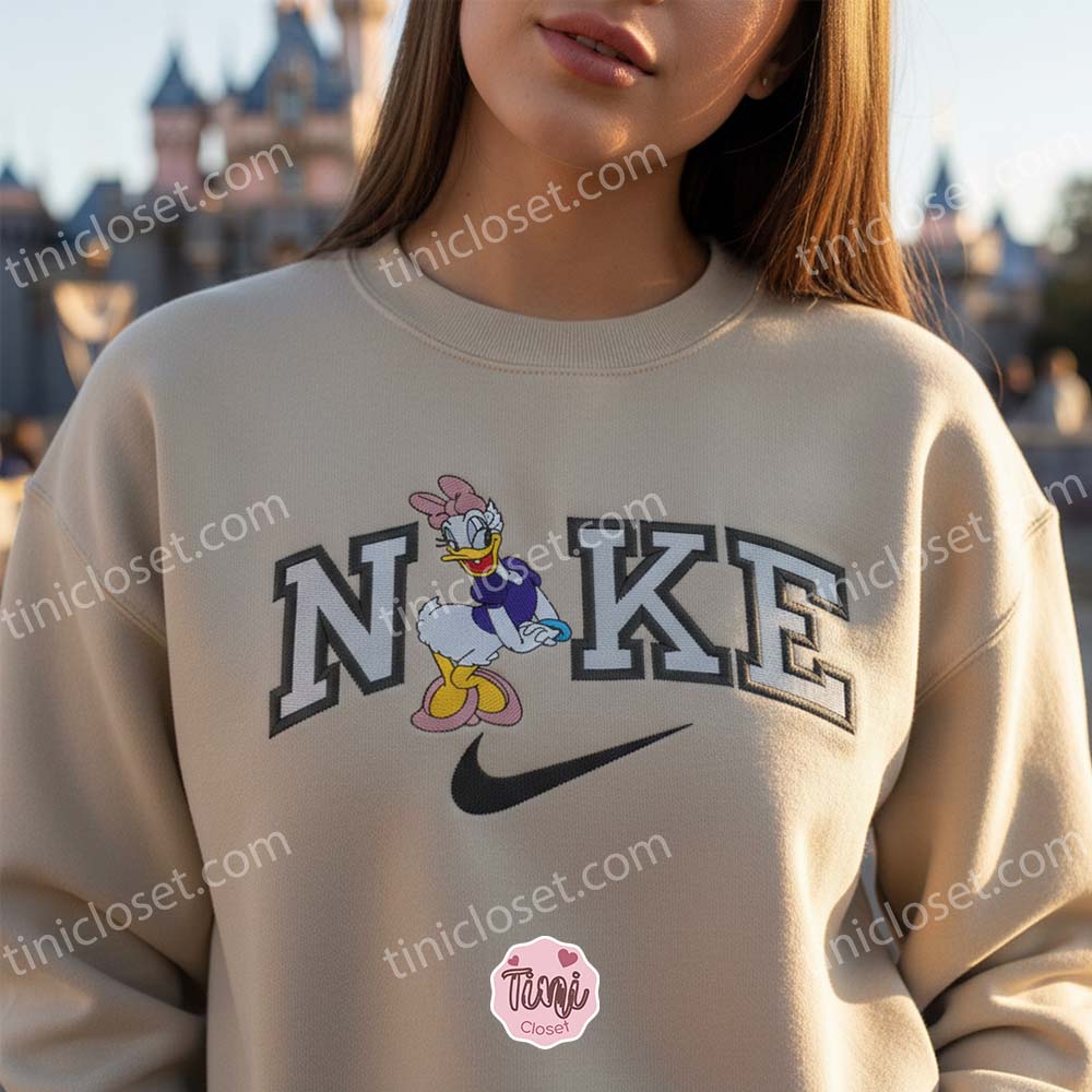 Welcome to Tinicloset, where we believe that the clothes you wear should tell a story, celebrate your favorite memories, and highlight your unique personality. Operating under our cherished motto, “Small Gifts Great Love,” we specialize in designing and crafting premium custom-embroidered apparel for customers across the United States. We take immense pride in offering high-quality, meticulously stitched garments that bring a touch of nostalgia and joy to your everyday wardrobe. Whether you are searching for a charming outfit for your next vacation or a meaningful gift for someone incredibly special, our expansive collection is thoughtfully created with the highest attention to detail. Among our most fabulous and highly sought-after designs is the Daisy Duck Embroidered Sweatshirt. This piece beautifully captures the sassy, iconic, and timeless spirit of one of the most beloved animated characters, offering an elevated and stylish addition to your closet.