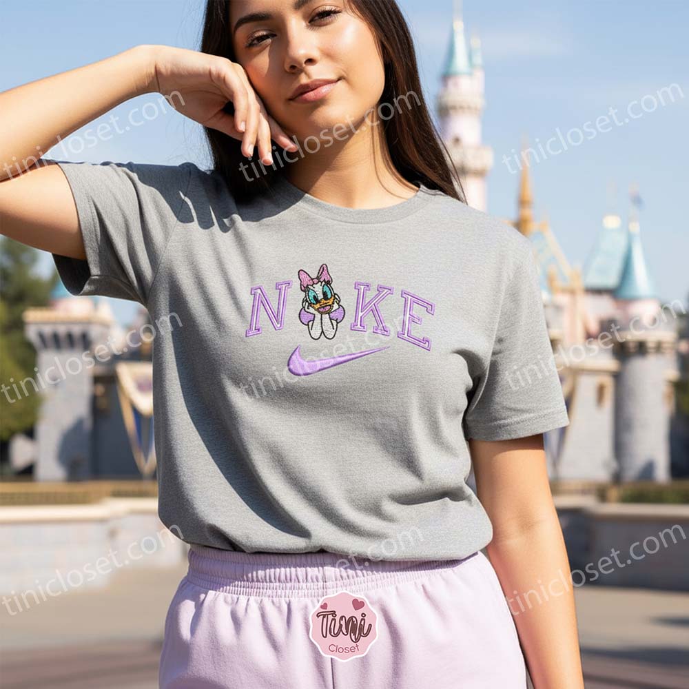 Daisy Duck Nike Embroidered Shirt, Disneyland Family Shirts, Nike Inspired Embroidered Hoodie