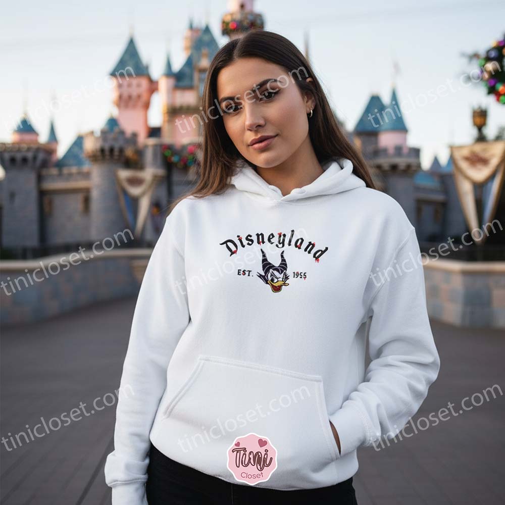 Daisy Duck Maleficent Evil Est. 1955 Embroidered Sweatshirt, Halloween Embroidered Shirt, Disney Embroidered Hoodie