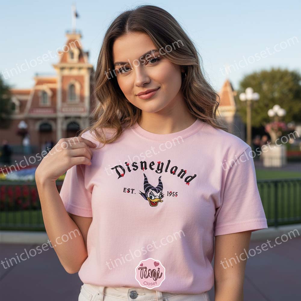 At Tinicloset, we are passionate about bringing your favorite pop culture moments to life through high-quality, comfortable, and beautifully detailed embroidered apparel. The Daisy Duck Maleficent Evil Est. 1955 collection represents everything we love about character-driven fashion: it is fun, slightly edgy, incredibly nostalgic, and built to last. Step into the season with a wardrobe upgrade that reflects your unique personality and your love for timeless animation. Explore our sizing options, choose your preferred garment style—whether that is a classic sweatshirt, a cozy hoodie, or an everyday t-shirt—and get ready to turn heads and cast a stylish spell wherever you go.