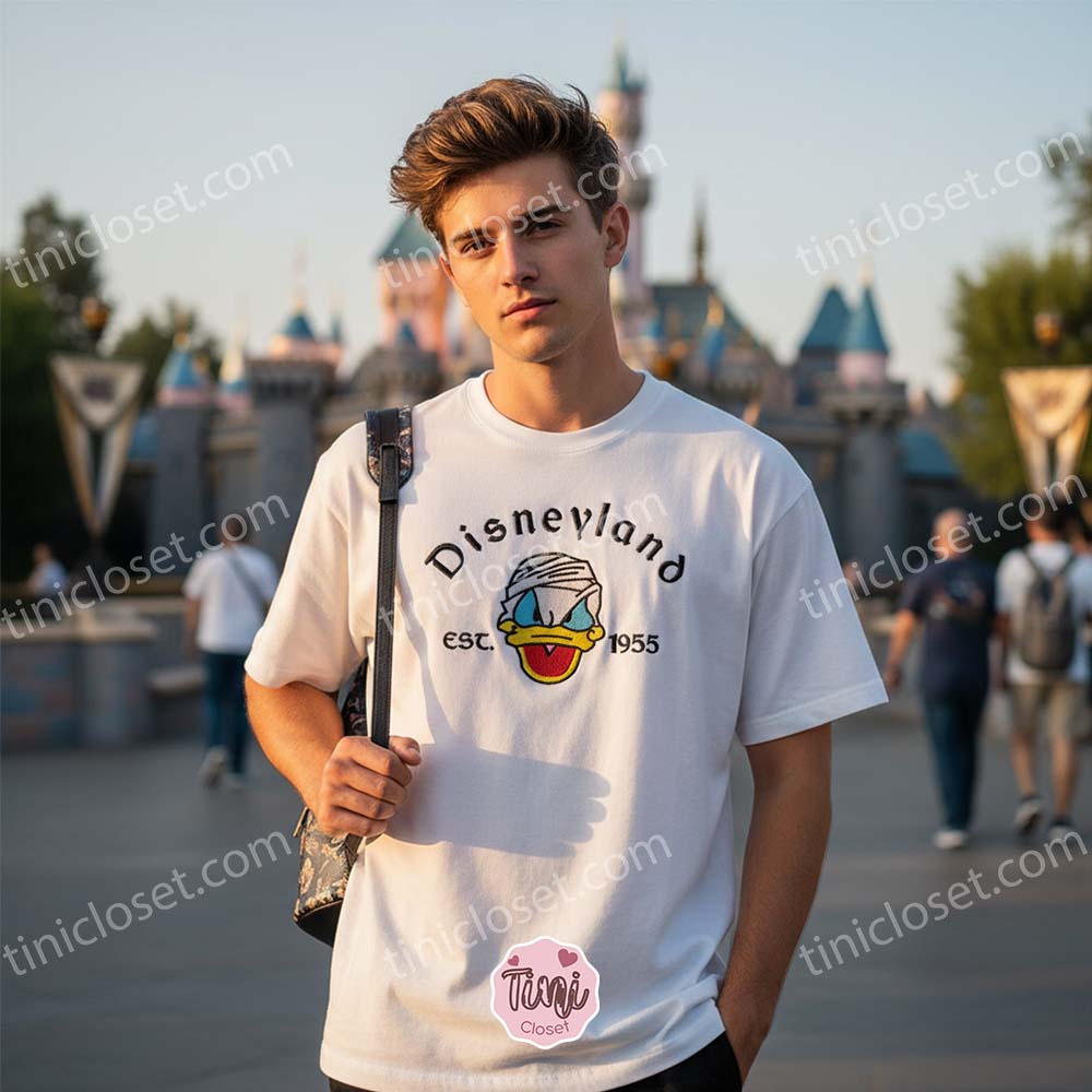 The Quintessential Retro Disney Aesthetic – Donald Duck Est 1955 Embroidered T-shirt