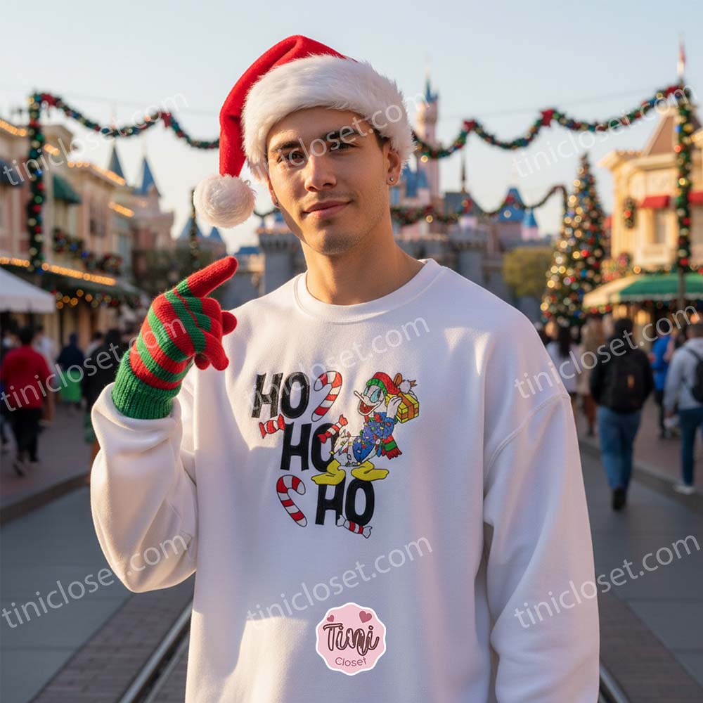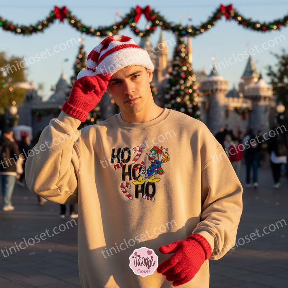 Donald Duck Ho Ho Ho Christmas Embroidered Sweatshirt, Retro Disney Holiday Apparel, Festive Xmas Character Crewneck, Holiday Gift for Him Her. (3)