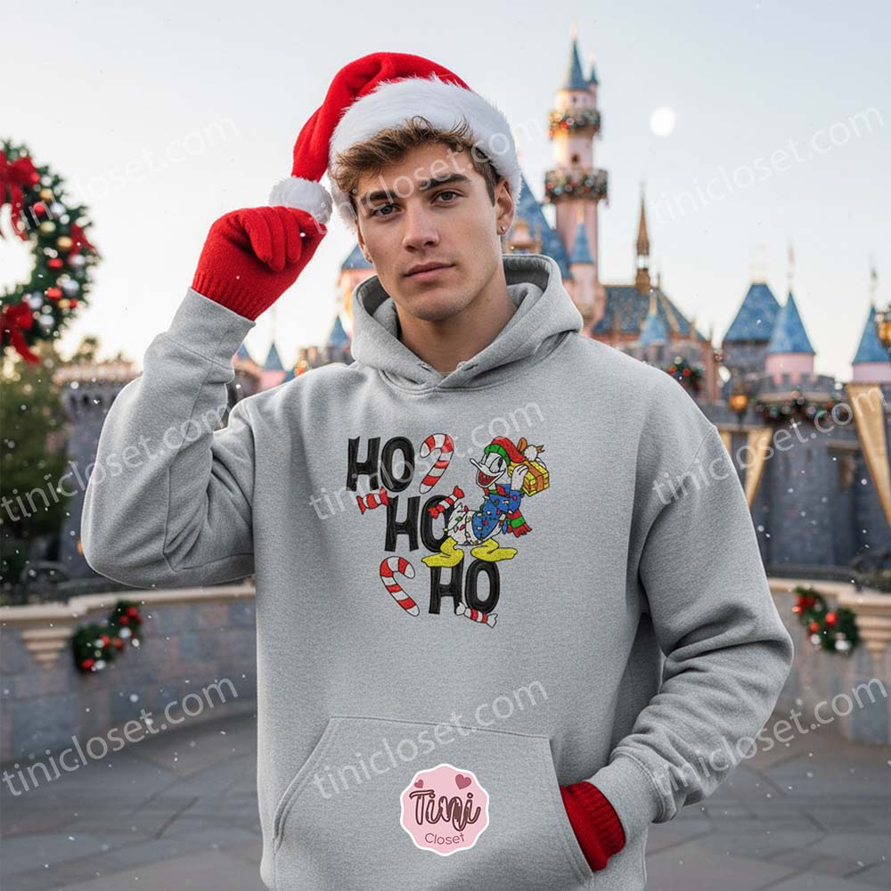 Donald Duck Ho Ho Ho Christmas Embroidered Sweatshirt, Retro Disney Holiday Apparel, Festive Xmas Character Crewneck, Holiday Gift for Him Her. (1)