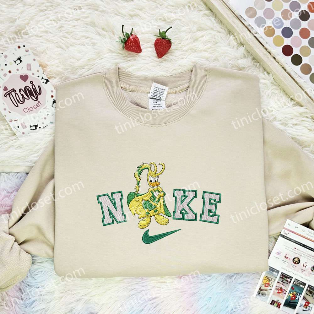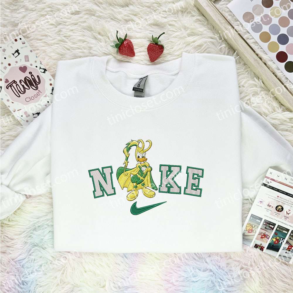 Donald Duck Loki Embroidered Shirt, Marvel Movie Embroidered Hoodie, Disney Characters Embroidered T-Shirt