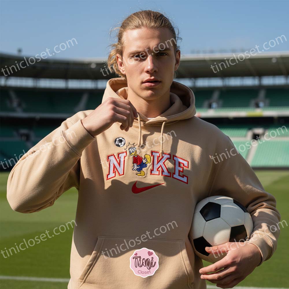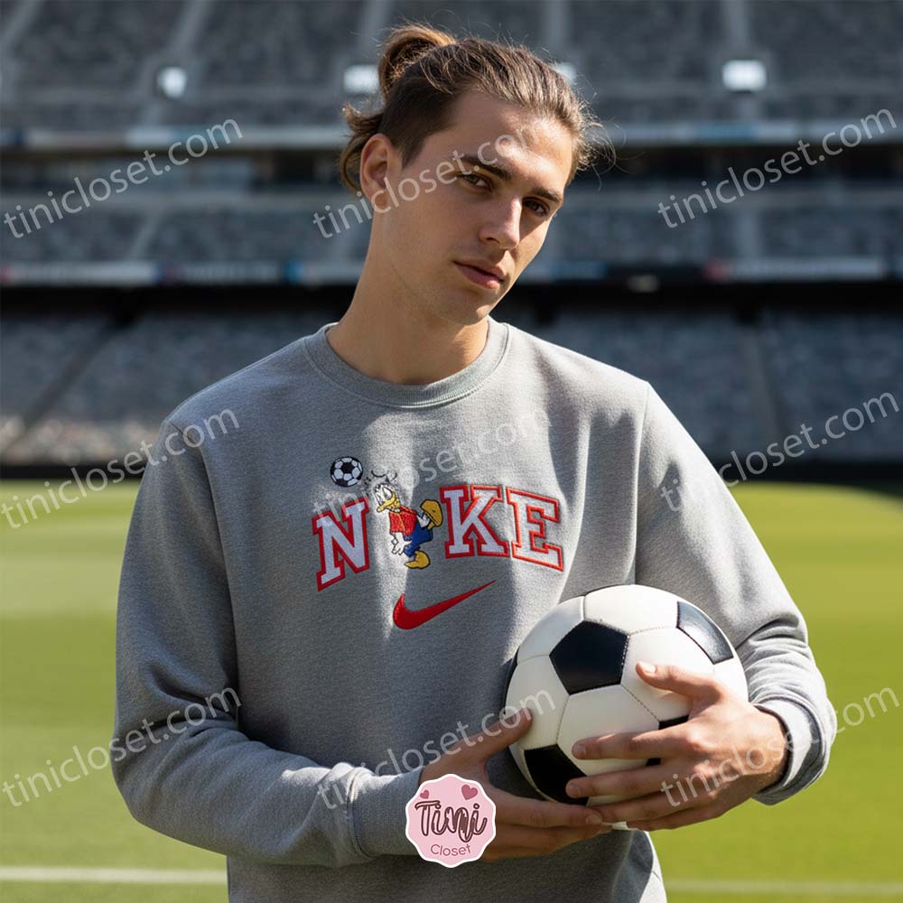 Donald Duck Soccer Embroidered Shirt, Disney Character Sports Apparel Hoodie, Custom Nike Inspired Soccer Duck Sweatshirt, Funny Cartoon Sports Crewneck