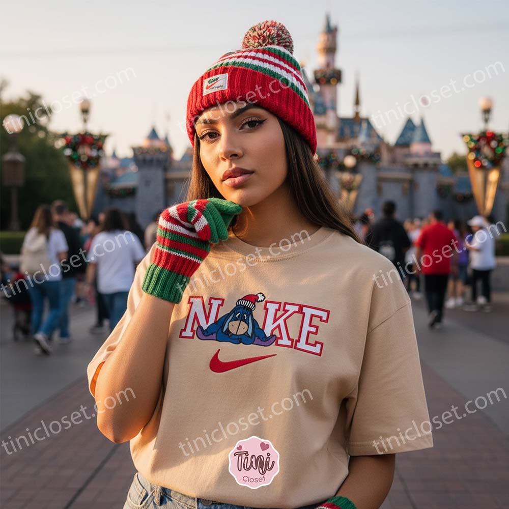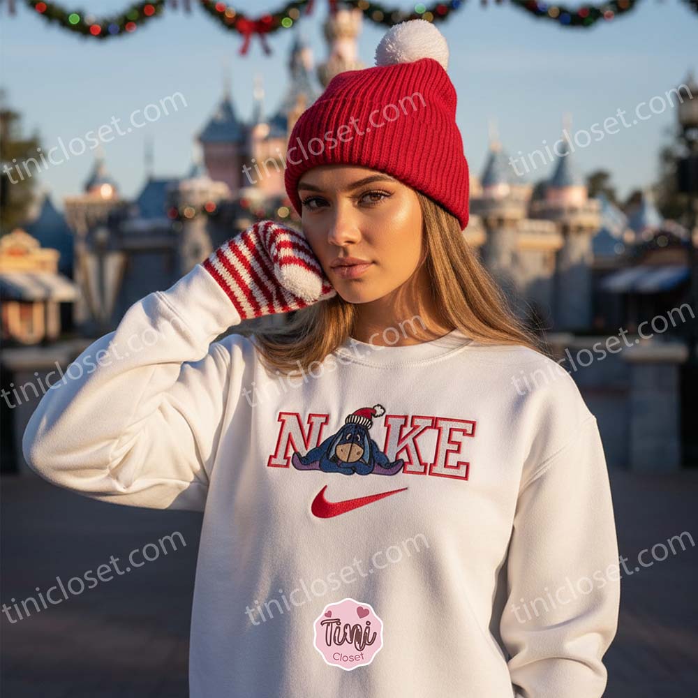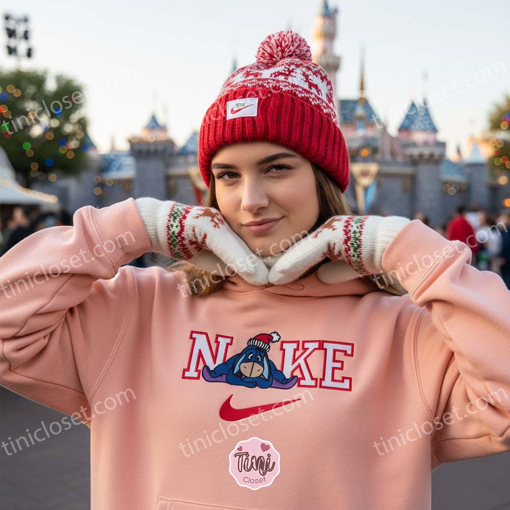 When the air turns crisp and the festive lights begin to twinkle, there is nothing quite like the comfort of a warm, high-quality sweatshirt. At Tinicloset, we believe the holidays should be spent in style without sacrificing the cozy nostalgia of our favorite childhood stories. Introducing the Eeyore Christmas Embroidered Hoodie, a standout piece in our seasonal collection that perfectly captures the gentle, endearing spirit of Winnie the Pooh’s most beloved friend. This isn’t just another piece of festive wear; it is a premium Disney Character Nike Inspired Sweatshirt designed for those who want to celebrate the season with a touch of “Custom Embroidery” and a lot of heart.