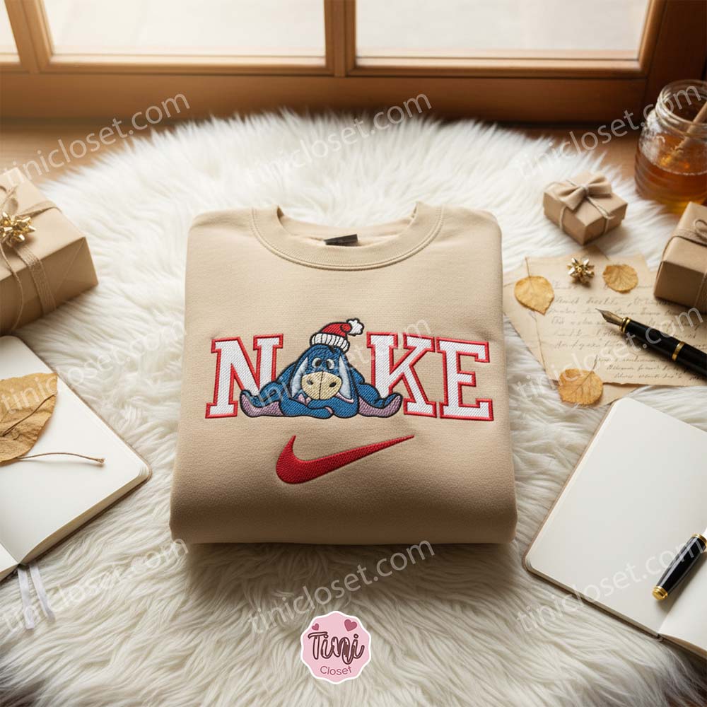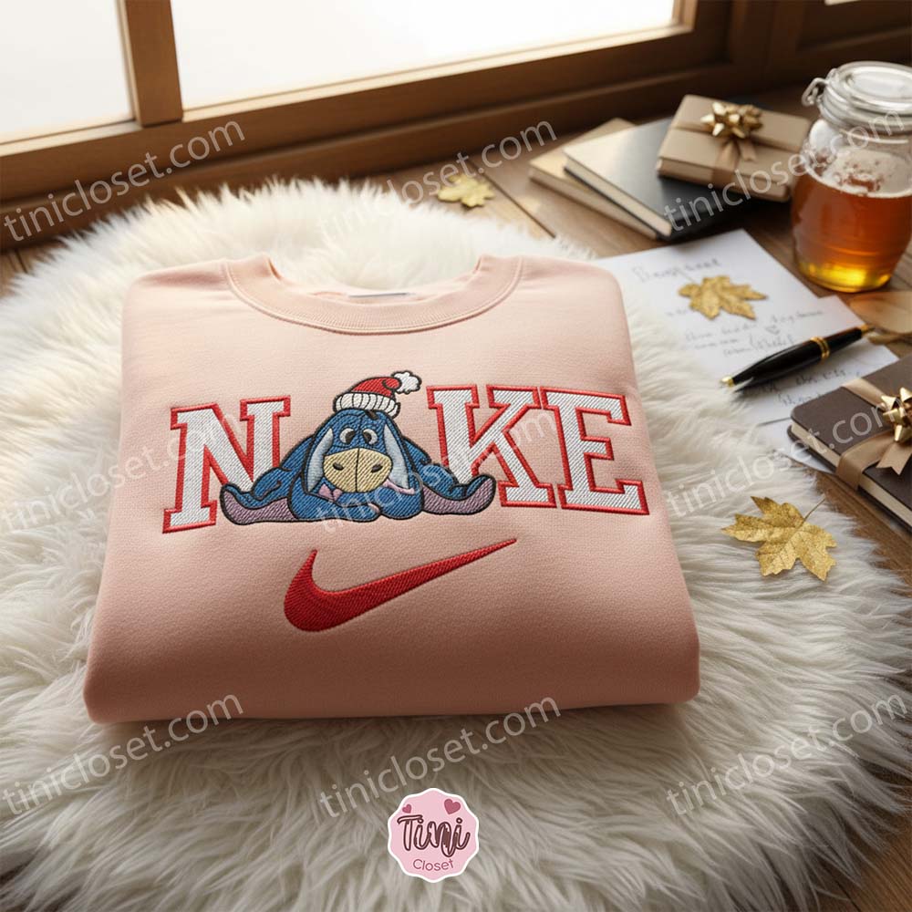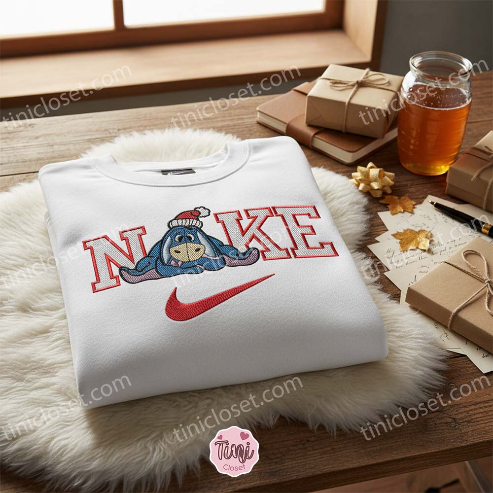 At Tinicloset, we understand the importance of self-expression and the desire to wear clothing that reflects one’s personality. Our custom embroidered shirts and other apparel items are designed with this in mind, giving our customers the opportunity to showcase their unique style and love for iconic characters. One of our standout pieces, the Nike x Eeyore Xmas embroidered T-shirt, combines the timeless appeal of Nike with the endearing melancholy of Eeyore, the lovable donkey from the Hundred Acre Wood.
