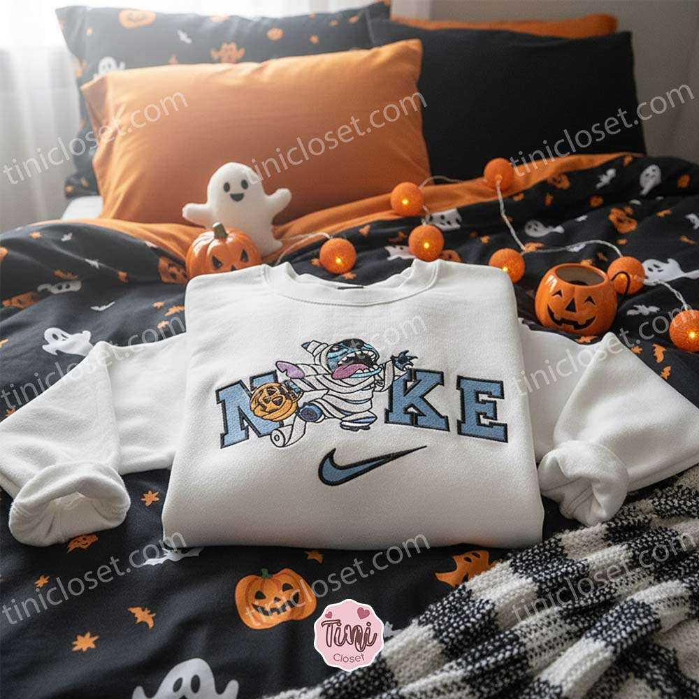 “Walk like an Egyptian? More like stumble like an alien!” This Halloween, Experiment 626 has tried his hand at a classic costume, but things have gone a little sideways. Introducing the Funny Stitch as Mummy Halloween Embroidered Sweatshirt, a design that proves even ancient curses can be adorable.