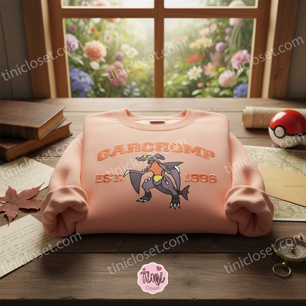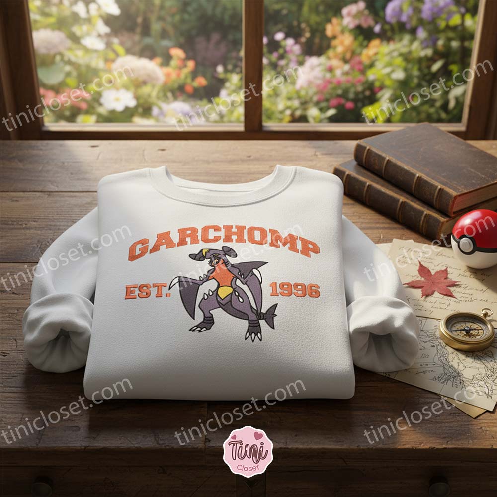 In the world of Pokémon, few creatures command as much respect as Garchomp. Known as the “Mach Pokémon” and the signature ace of the Sinnoh Region’s Champion, Cynthia, this pseudo-legendary Dragon/Ground-type represents ultimate power and speed. Now, you can channel that champion energy with our Garchomp Pokemon Embroidered Crewneck, a premium piece of apparel designed for trainers who demand the best.