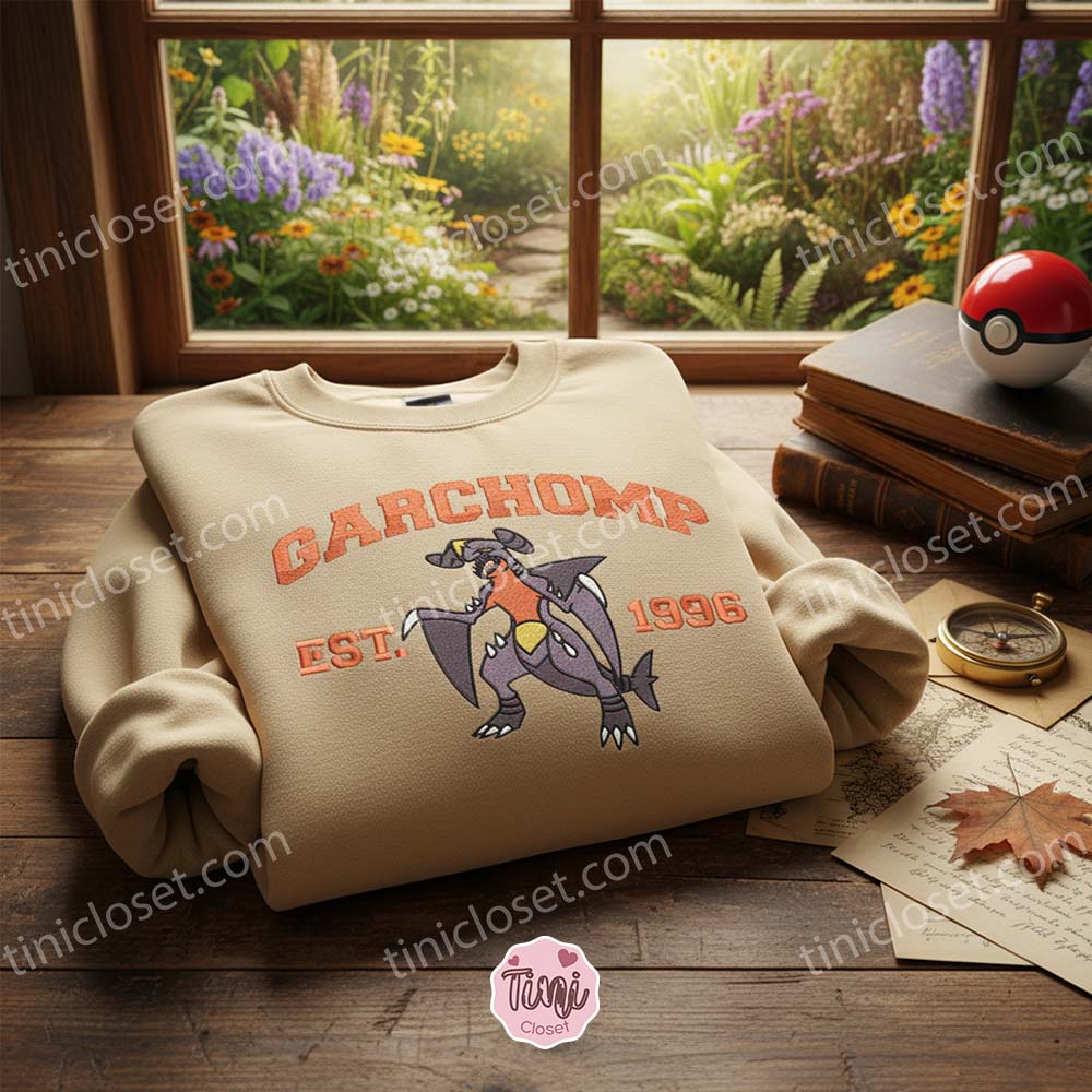 Why settle for being a standard trainer when you can dress like a Champion? The Garchomp Pokemon Embroidered Crewneck is more than just clothing; it’s a tribute to one of the strongest Pokémon in history.
