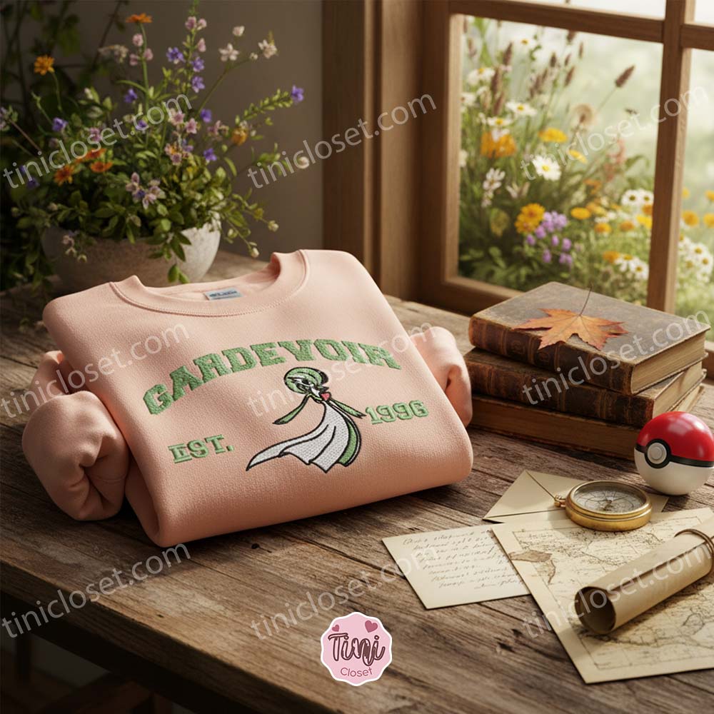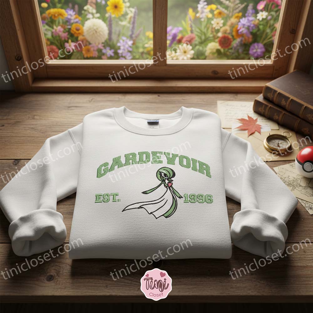 In the vast world of Pokemon, few creatures command as much respect and admiration as Gardevoir. Known for its grace, immense Psychic power, and undying loyalty to its trainer, this dual Psychic/Fairy type is a fan favorite from the Hoenn region. We have captured that ethereal beauty and translated it into high-quality streetwear with our Gardevoir Embroidered Sweatshirt. This collection is designed for the trainer who values a cleaner, more sophisticated aesthetic in their anime apparel.