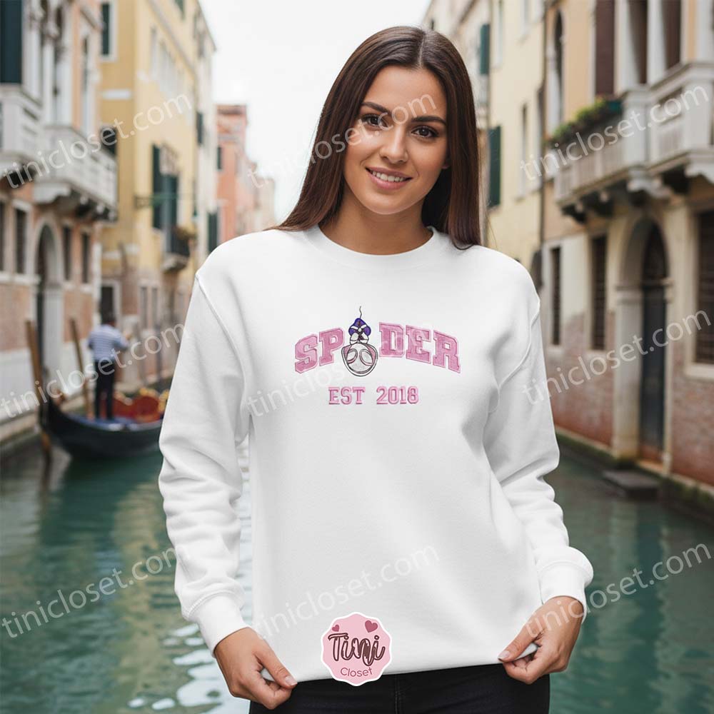 Ghost Spider Gwen Stacy Embroidered Crewneck, Custom Gwen Stacy & Peter Parker Chibi Tee, Spider-Man & Ghost Spider Embroidered Hoodie, Minimalist Marvel Fan Gift