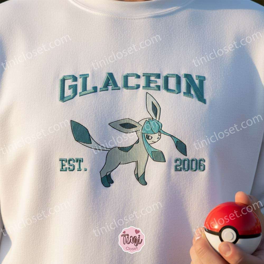 Embrace the chill of the Sinnoh region with the Glaceon Est 2006 Embroidered Sweatshirt, a premium addition to the Tinicloset anime collection. As one of the most elegant evolutions of Eevee, Glaceon has captured the hearts of trainers since its debut in the fourth generation of games. This exclusive design combines the nostalgic “Est. 2006” varsity aesthetic with high-quality character art, creating a piece of streetwear that is as stylish as it is comfortable. Whether you are building a competitive Ice-type team or simply love the “Eeveelutions,” this custom embroidered gear is the perfect way to display your fandom in the US.