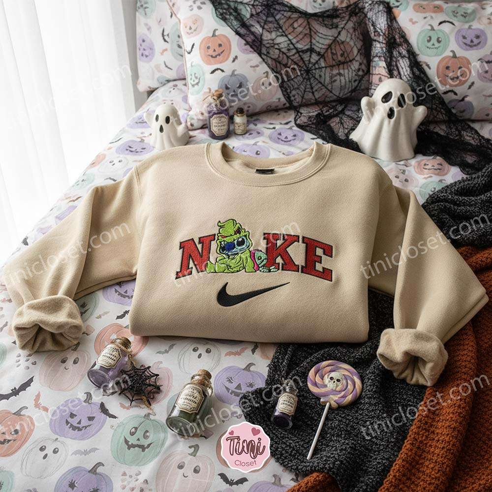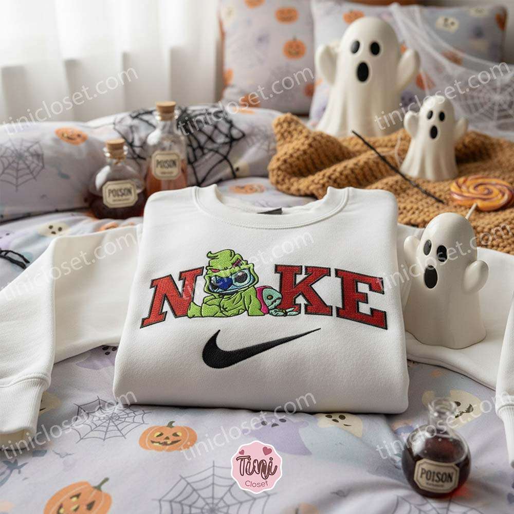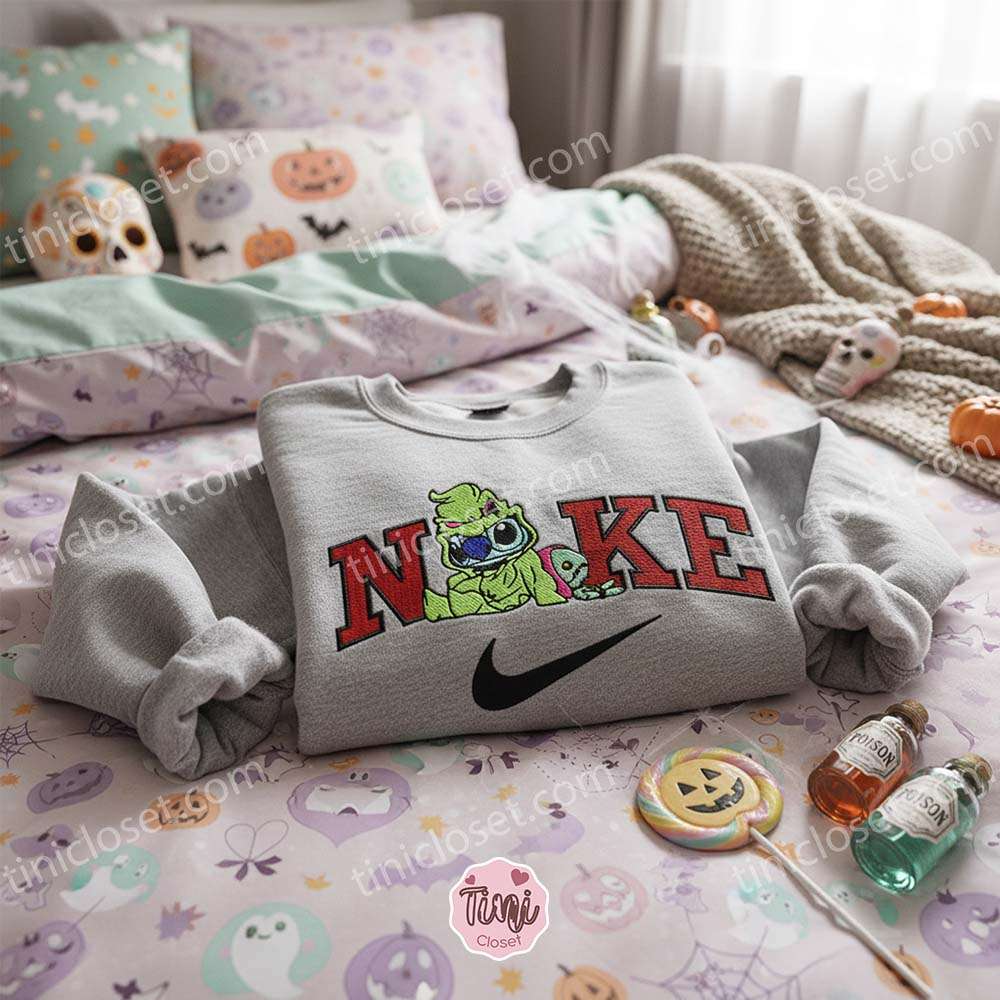 Halloween Cosplay Stitch Oogie Boogie Hoodie, Embroidered Nightmare Before Christmas Sweatshirt, Disney Spooky Holiday Crewneck, Gift for Him Her