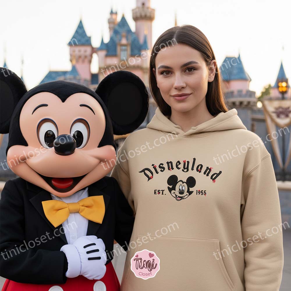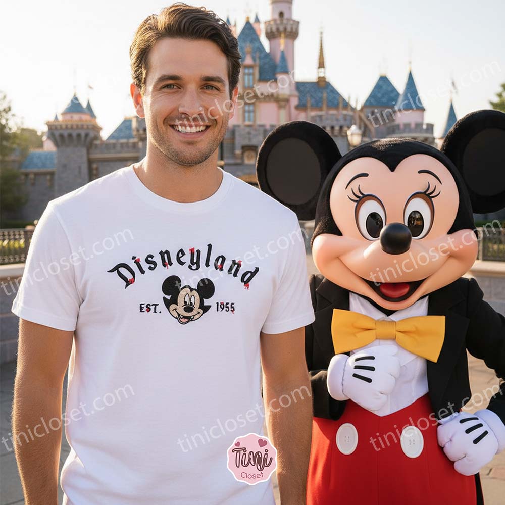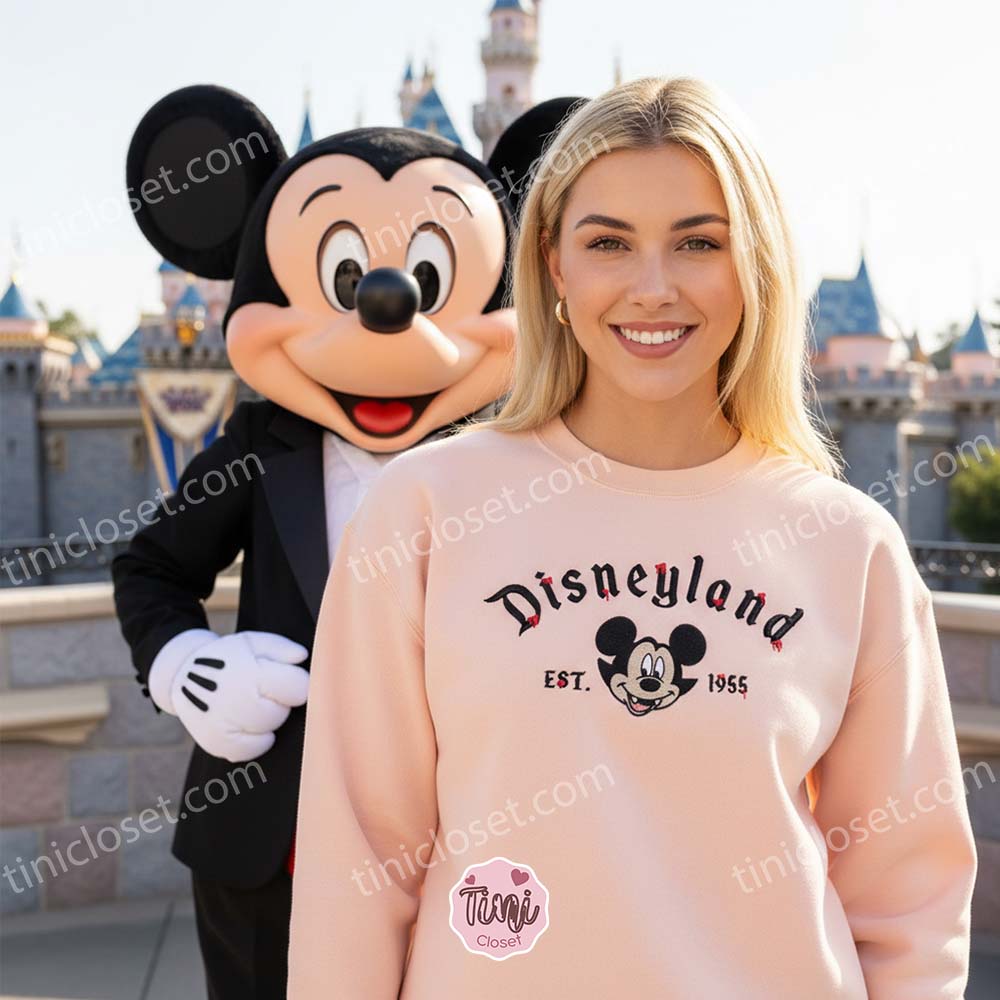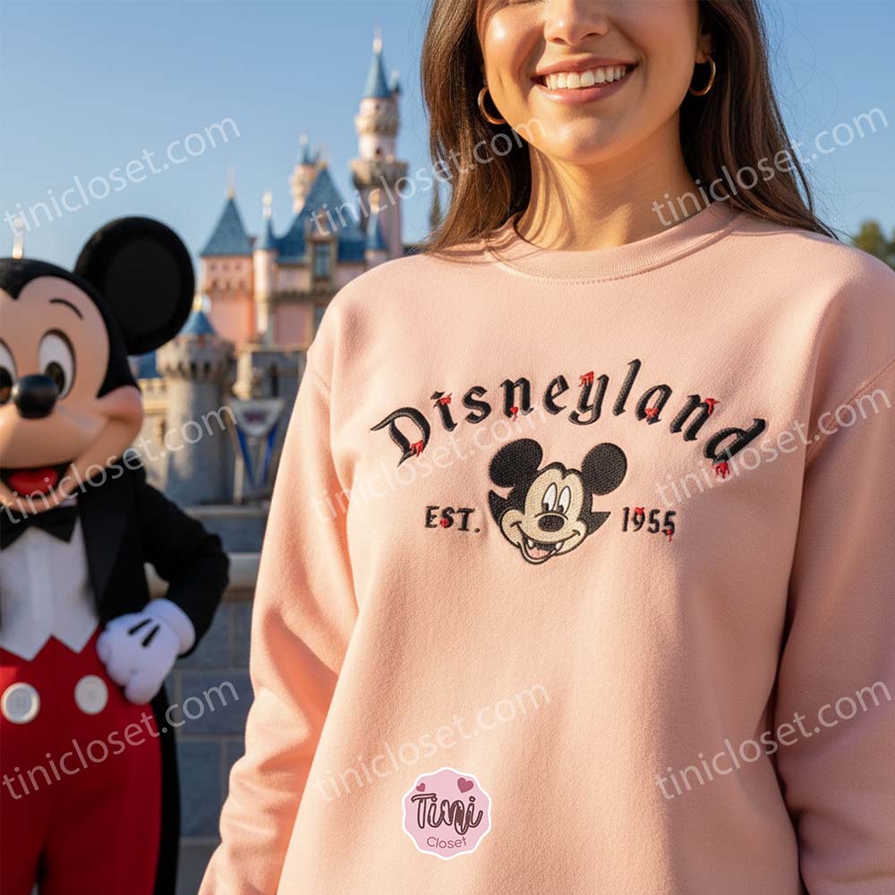 There is a special kind of magic that happens when the sun goes down over the theme parks in October. The pumpkins light up, the fog rolls in, and the “Happiest Place on Earth” transforms into a realm of spooky delight. At Tinicloset, we have captured that exact feeling in our latest release for the US market: the Spooky Disneyland Est 1955 Vampire Mickey Embroidered Sweatshirt. This isn’t just a piece of clothing; it’s a tribute to the history of the parks, reimagined with a gothic flair that is perfect for the modern Disney fan.