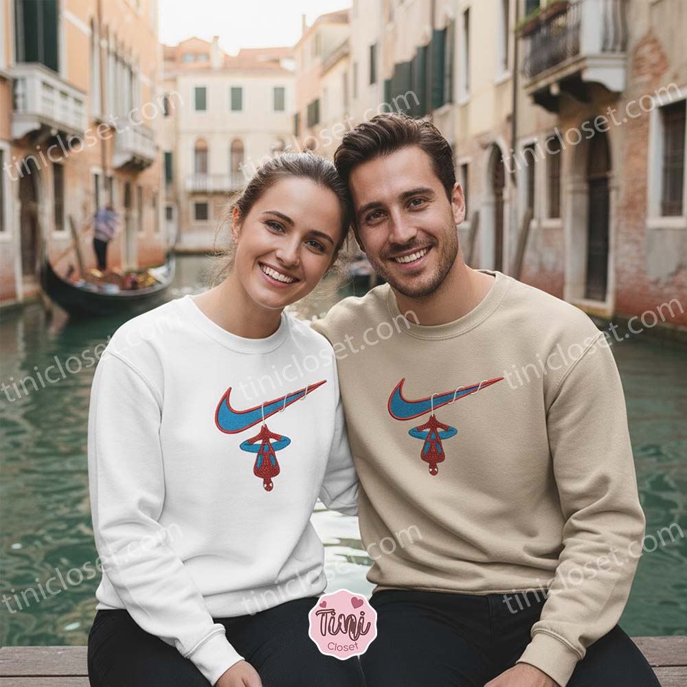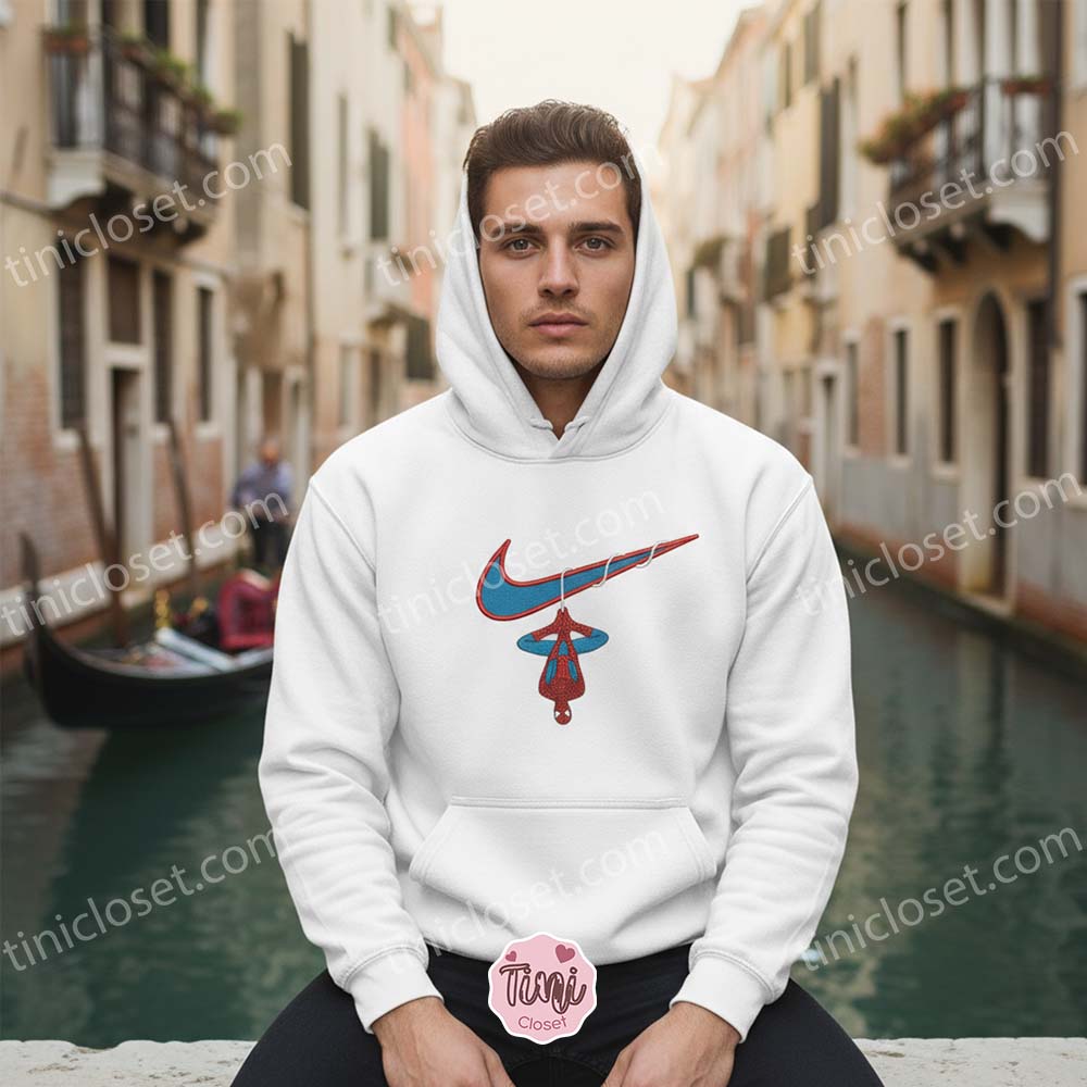 In the ever-evolving landscape of American streetwear, few things command attention quite like a perfectly executed “mash-up.” At Tinicloset, we’ve taken two of the most recognizable symbols in the world—the legendary Marvel web-slinger and the iconic Nike Swoosh—to create the Hanging Spider-Man Embroidered Hoodie, Sweatshirt, and T-shirt. This isn’t just a piece of fan gear; it’s a high-fashion statement designed for those who live at the intersection of superhero culture and athletic aesthetic.