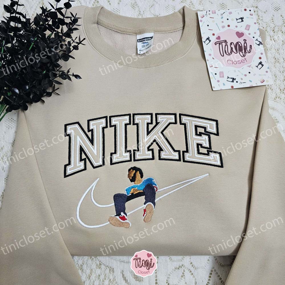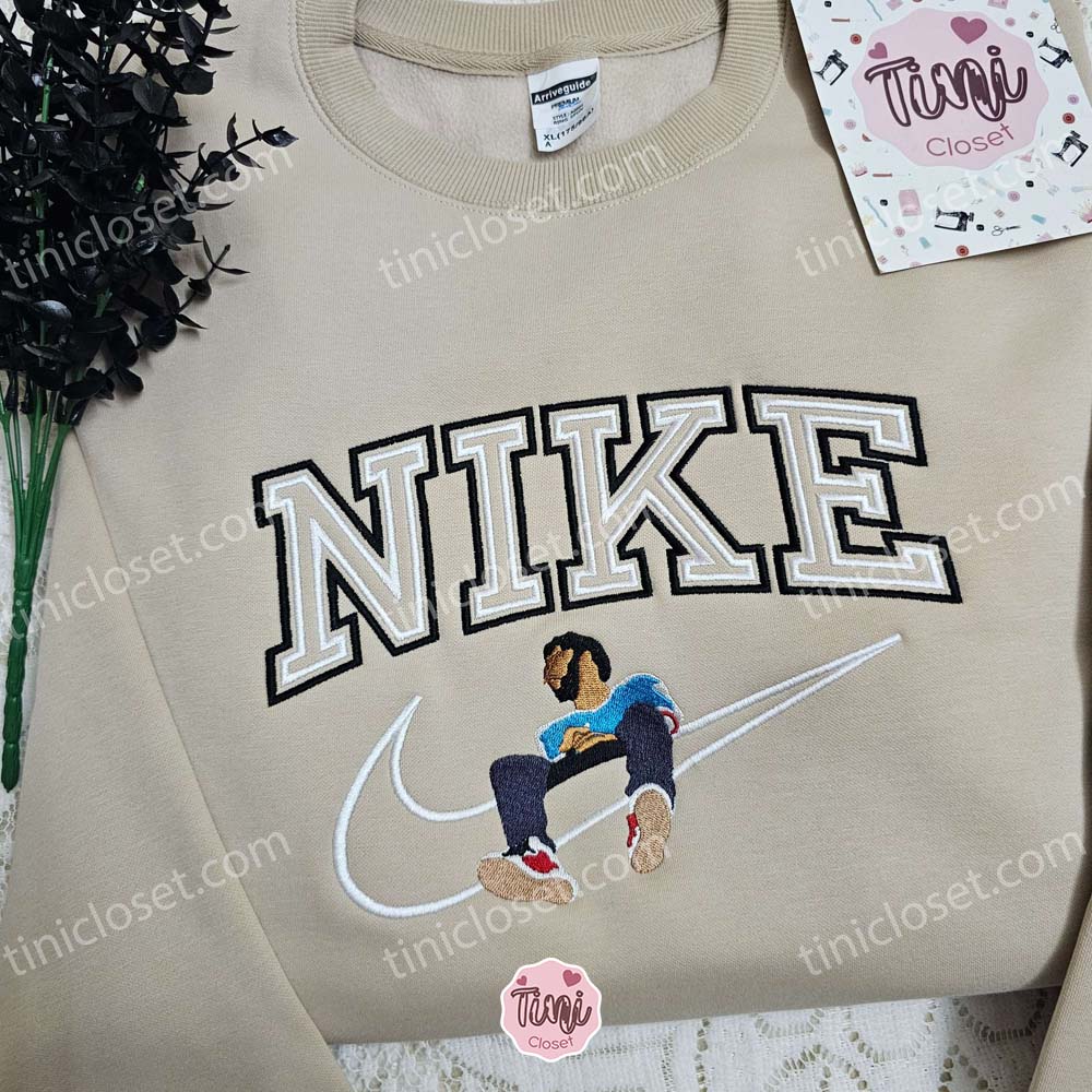 J Cole x Nike Embroidered Sweatshirt, Celebrity Embroidered Shirt, Nike Inspired Embroidered Shirt
