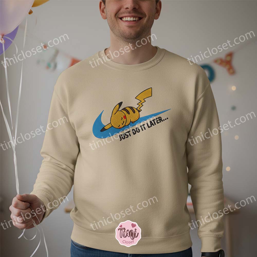 The Ultimate Procrastinator’s Anthem: “Just Do It Later” Pikachu Embroidered Sweatshirt