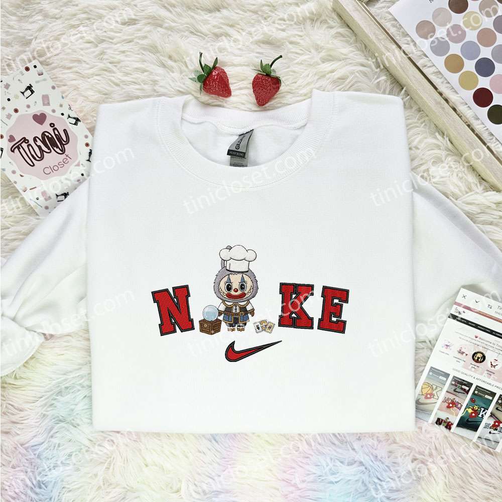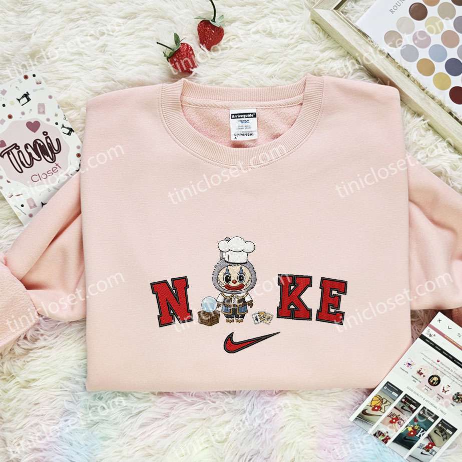 Labubu Clown Embroidered Shirt, Art Toy Embroidered Hoodie, Halloween Embroidered T-Shirt