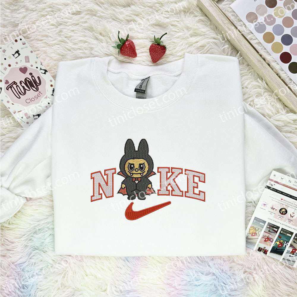 Labubu Dracula Embroidered Shirt, Art Toy Embroidered Hoodie, Halloween Embroidered T-Shirt