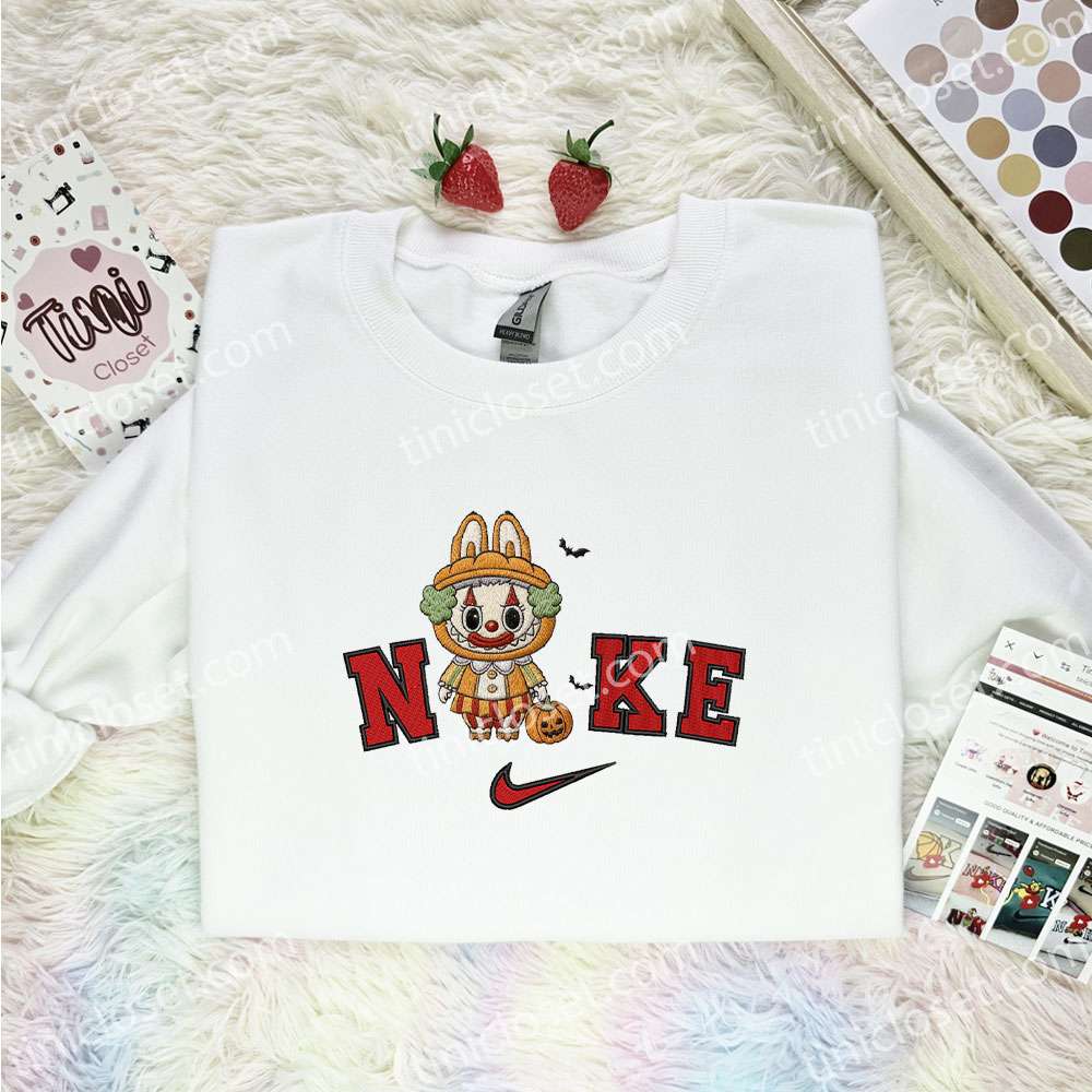Labubu Pumpkin Clown Embroidered Shirt, Art Toy Embroidered Hoodie, Halloween Embroidered Sweatshirt