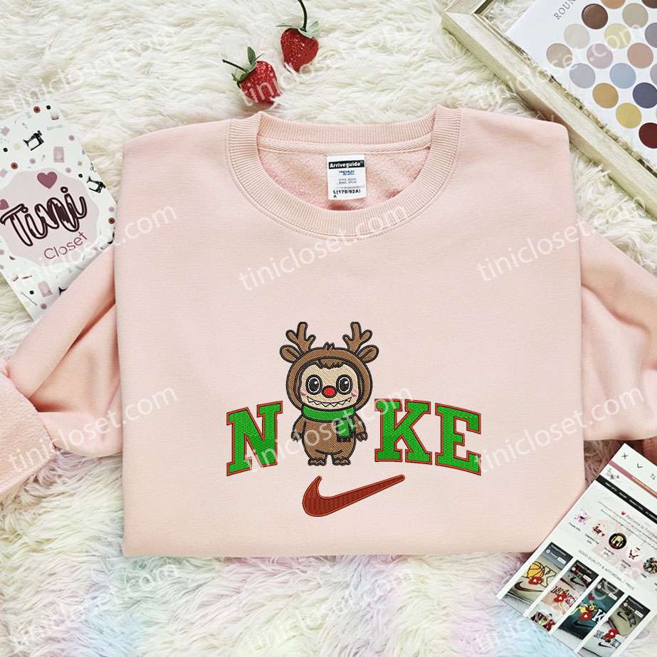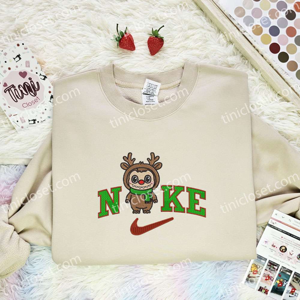 Labubu Reindeer Embroidered Shirt, Art Toy Embroidered Hoodie, Christmas Embroidered T-Shirt