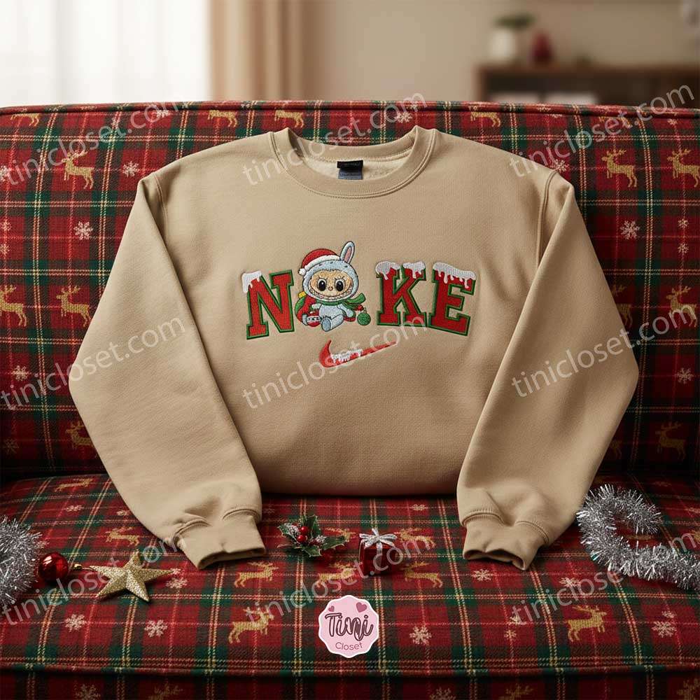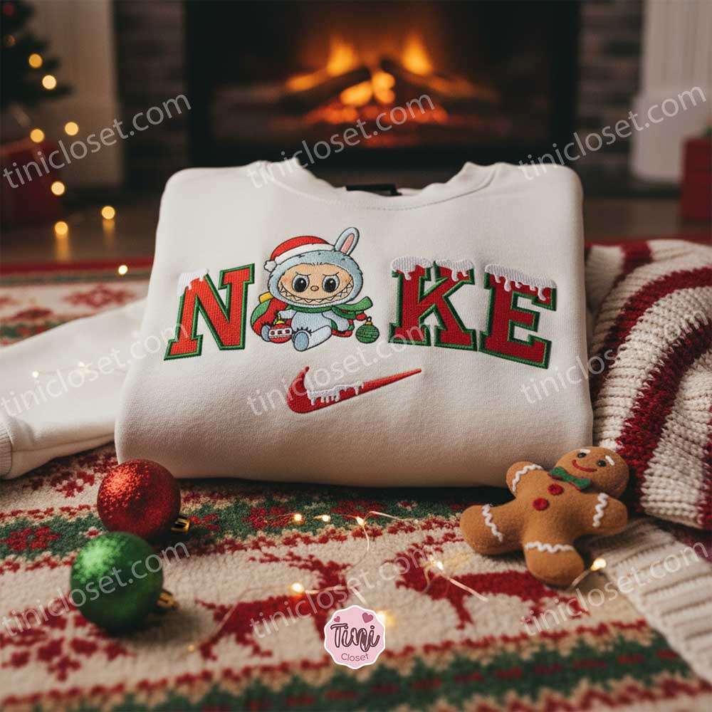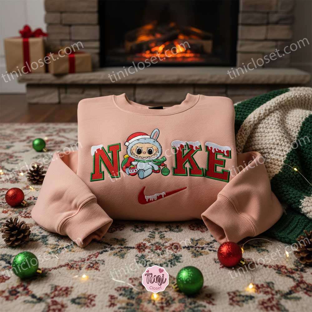Labubu Xmas Embroidered Shirt, Art Toy Embroidered Hoodie, Best Christmas Gift