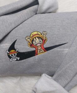Luffy Embroidered Shirt, One Piece Anime Shirts, Nike Inspired Embroidered Sweatshirt